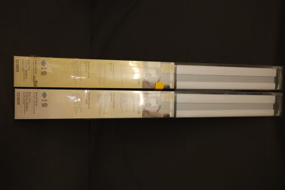 Allen + Roth Motorized Cellular Shade, 36 x 72 Inches, White. Features a paired remote control for operation of up to 6 shades, quiet motorized operation, and an easy battery compartment for replacement convenience. Pickup only.