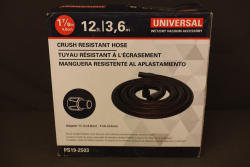 Universal Crush Resistant Hose 12 ft 1 7/8 in for Wet/Dry Vacuum. This hose is designed for use with wet or dry vacuum systems and measures 12 feet in length with a 1 7/8-inch diameter. Includes an adapter to fit 1 1/4-inch and 2 1/2-inch connections. Pickup only.