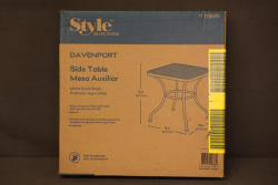 Davenport Metal Side Table with Matte Black Finish. Constructed with durable metal and a mesh tabletop, this side table measures 18 inches by 18 inches with a height of 18 inches. Packaged in its original box and appears to be in unused condition. Pickup only.