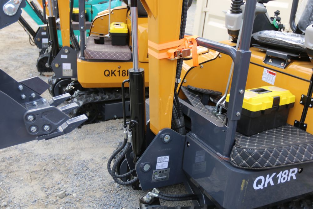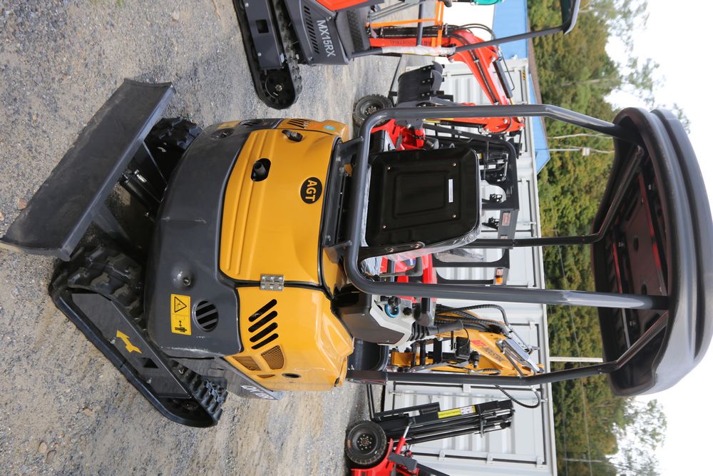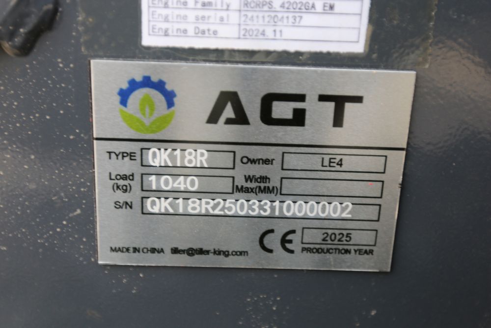 New 2025 AGT Industrial industrial gas powered mini Excavator model QK18R, RATO 15HP gasoline engine with EPA, pilot system, canopy, hydraulic thumb, dozer blade. Hours reading less than 1 hour.