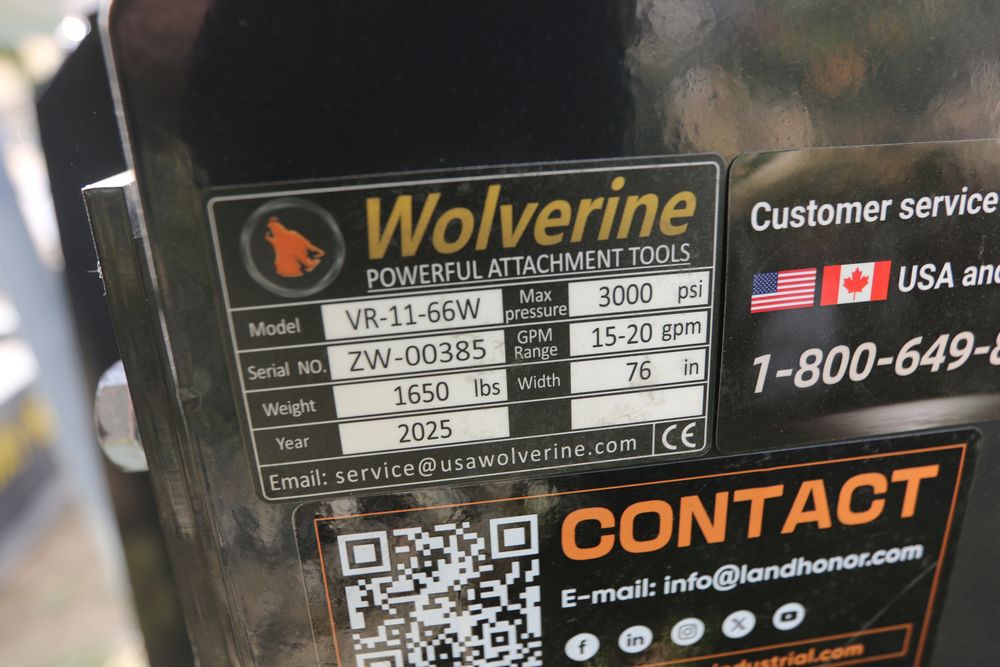 New 2025 Wolverine skid steer vibratory roller attachment model VR-11-66W, 24" drum diameter, 3.3T stimulation force.