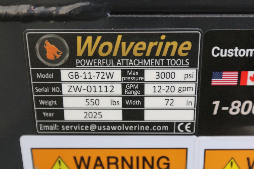New 2025 Wolverine Skid steer grapple bucket attachment model GB-11-72W, 36"D X 72"LX26"T.