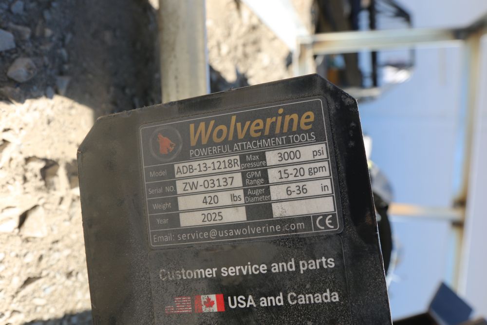 New 2025 Wolverine Skid steer auger drive and bit attachment model ADB-13-1218R, 12" and 18" auger, 38" working depth.