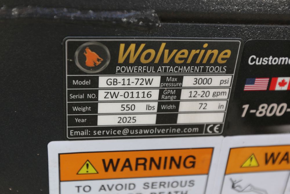 New 2025 Wolverine Skid steer grapple bucket attachment model GB-11-72W, 36"D X 72"LX26"T.