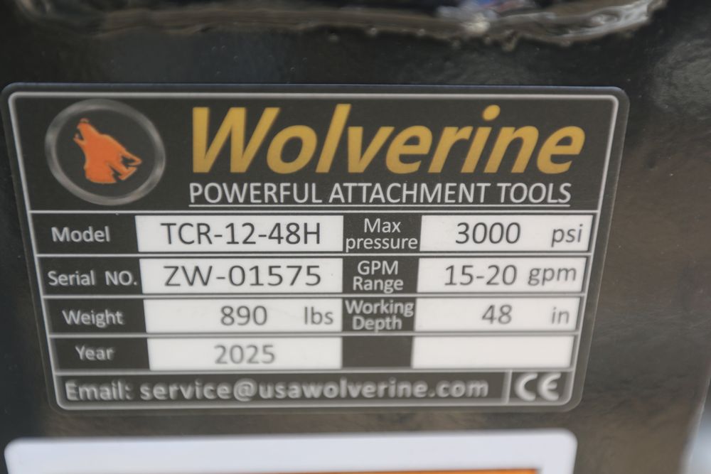 New 2025 Wolverine Skid Steer Trencher attachment model TCR-12-48H, trenching width 8", depth 48", clearing auger dia 15"