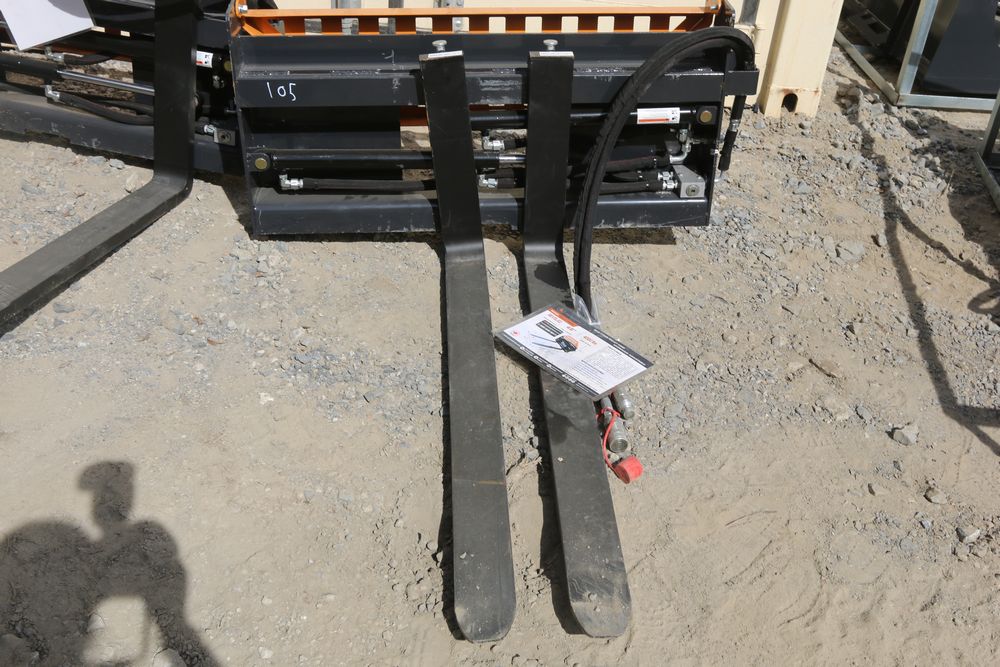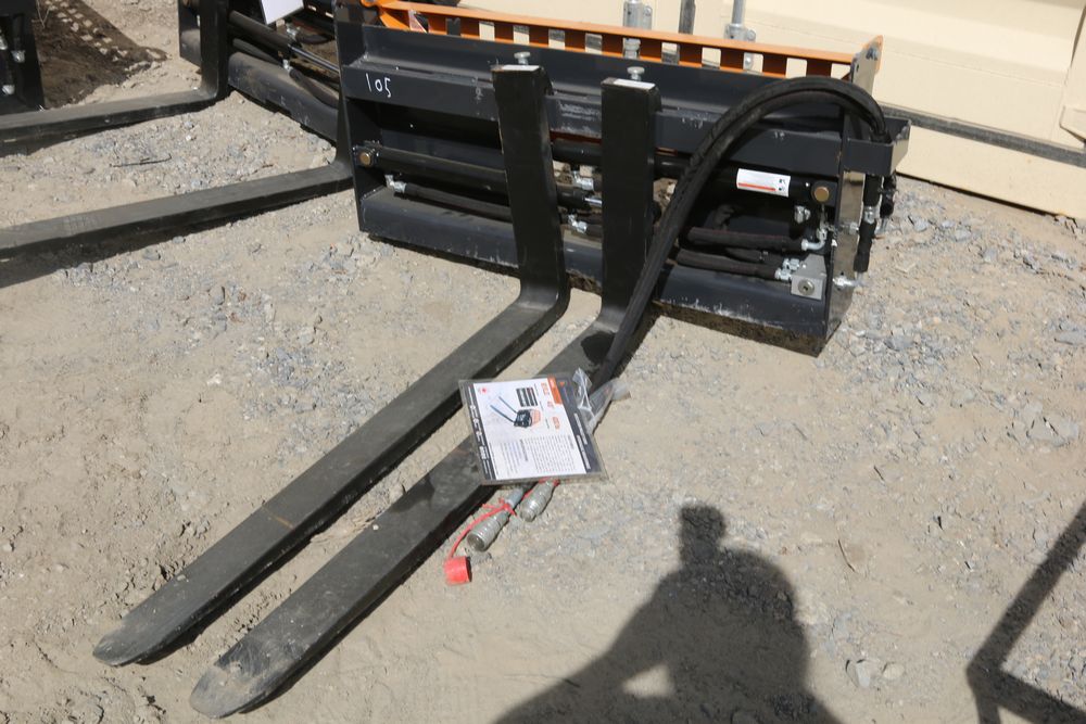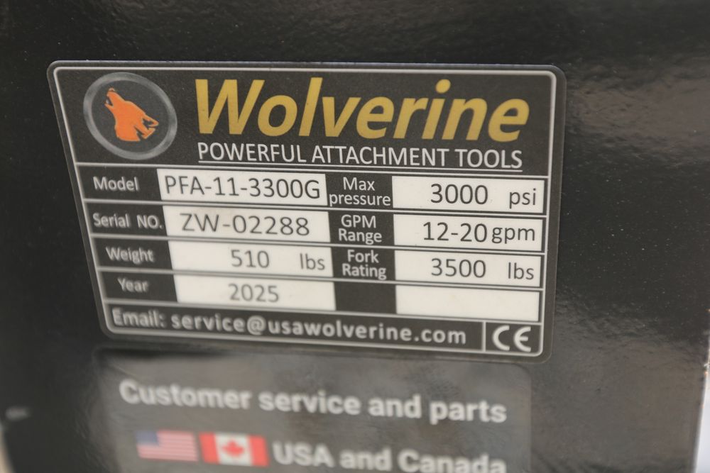 New 2025 Wolverine skid steer pallet fork attachment hydraulic adjustment model PFA-11-3300G, 48" fork adjustment.