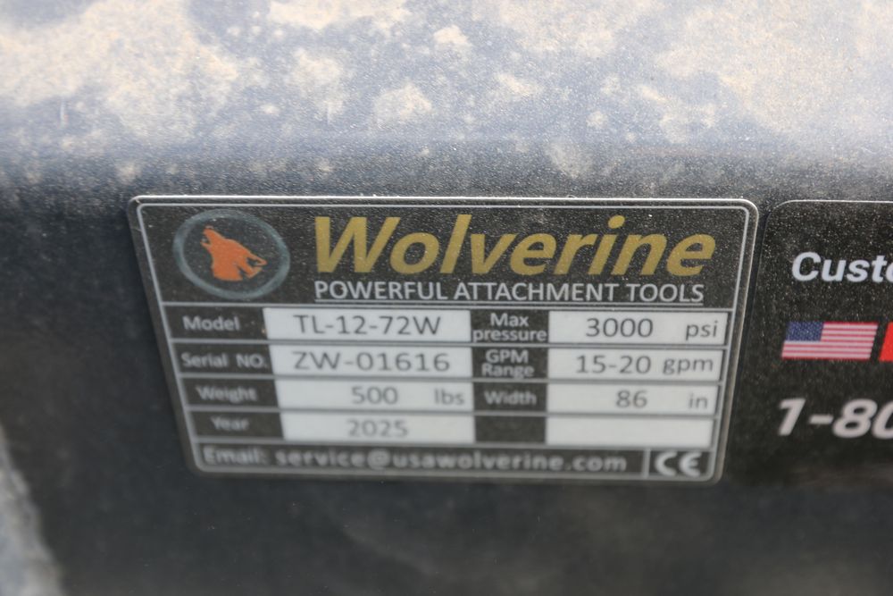 New 2025 Wolverine 72" skid steer tiller attachment model TL-12-72W, 72" tilling width 7" tilling depth, 36 tines.