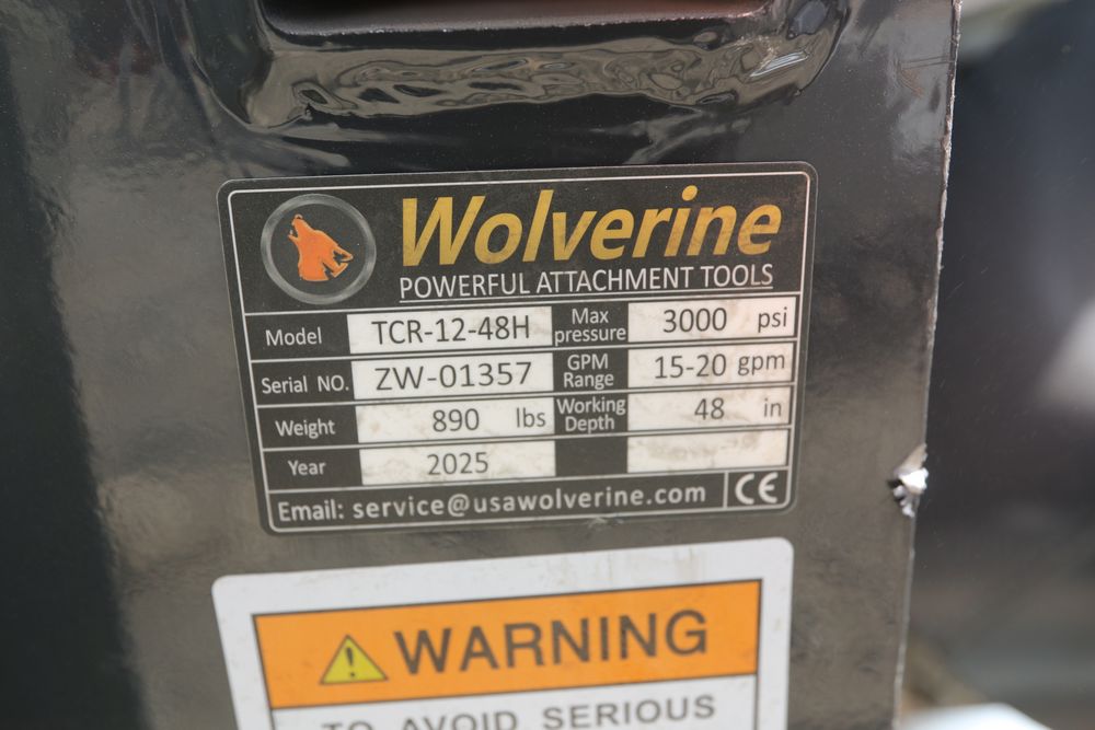 New 2025 Wolverine Skid Steer Trencher attachment model TCR-12-48H, trenching width 8", depth 48", clearing auger dia 15"