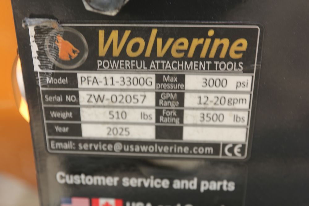 New 2025 Wolverine skid steer pallet fork attachment hydraulic adjustment model PFA-11-3300G, 48" fork adjustment.