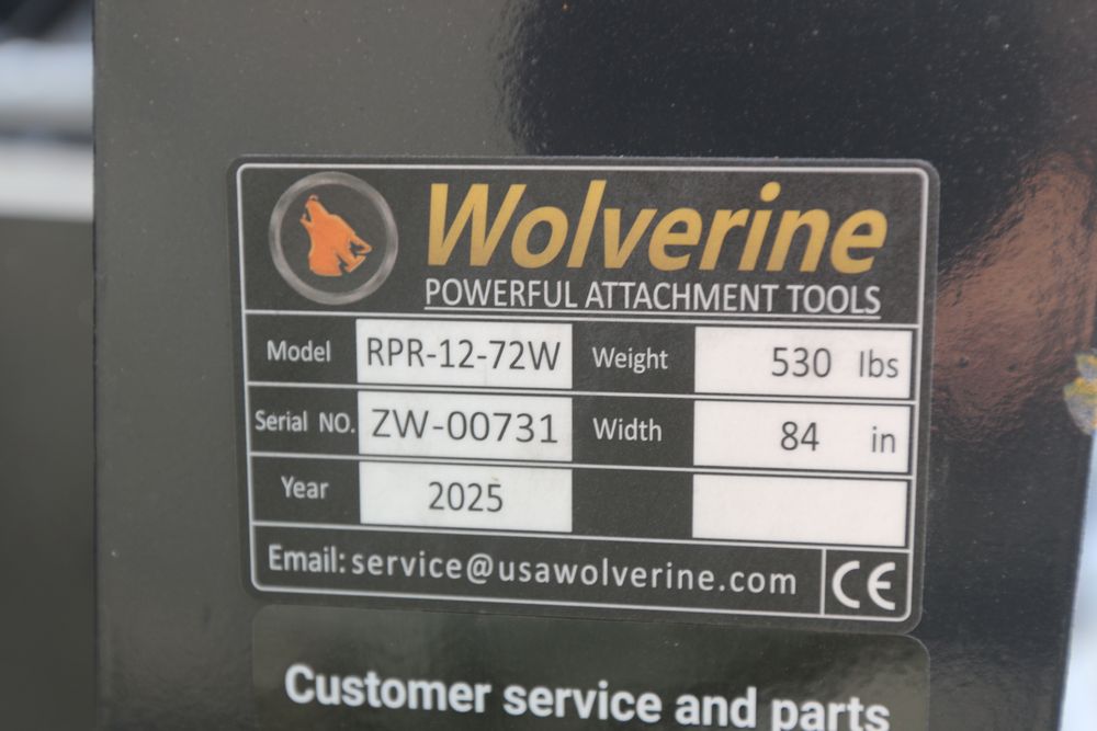 New 2025 Wolverine skid steer ripper attachment model RPR-12-72W, space for 11 teeth, 8" depth, 18" ripper tooth total length.