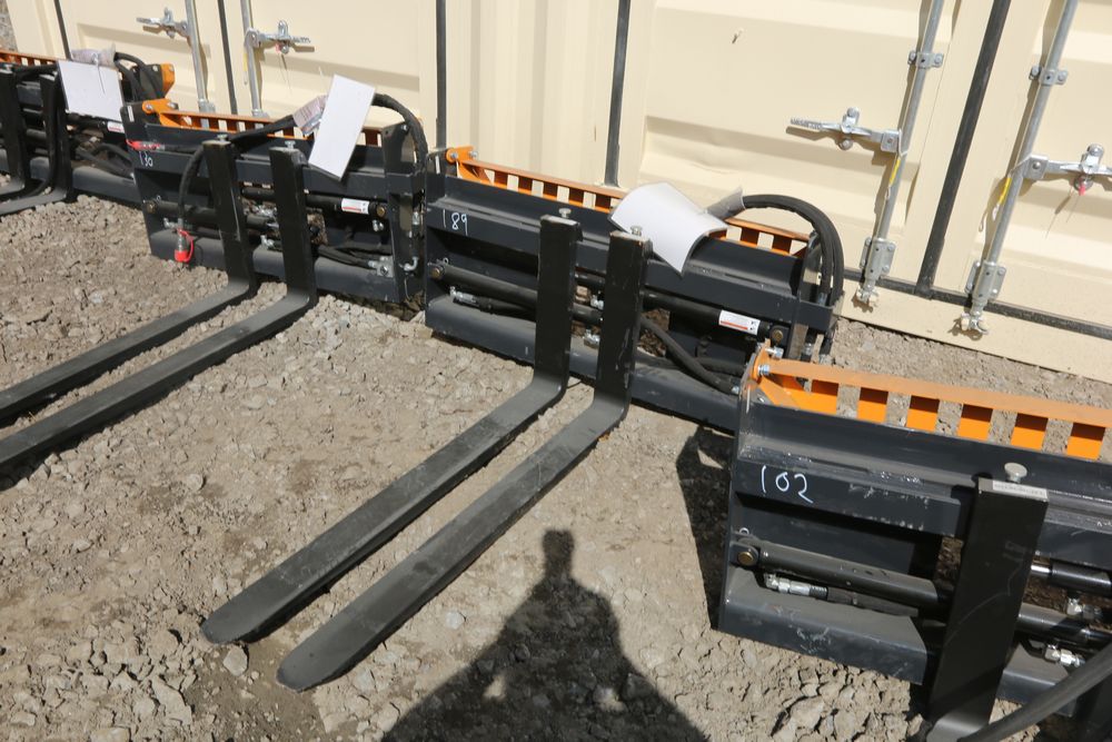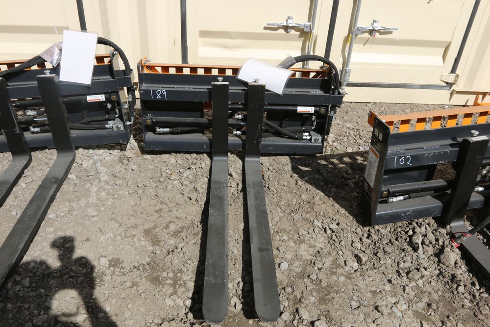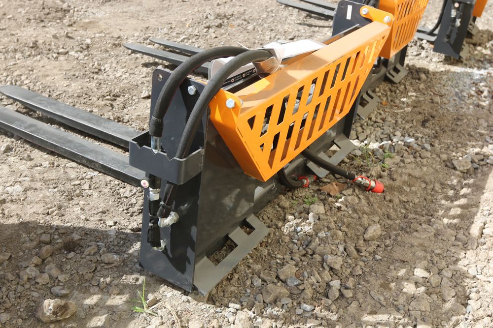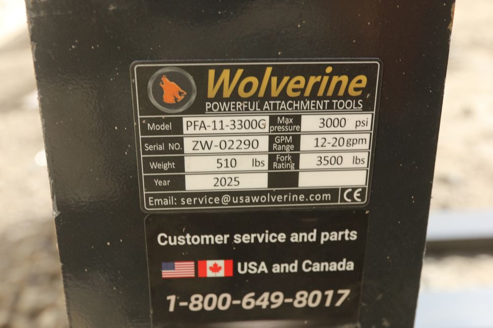 New 2025 Wolverine skid steer pallet fork attachment hydraulic adjustment model PFA-11-3300G, 48" fork adjustment.