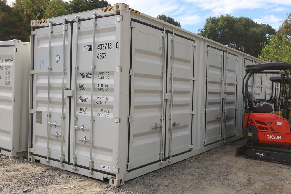 New 40' High cube multi-door container, four side doors, one end door, side forklift pockets.
