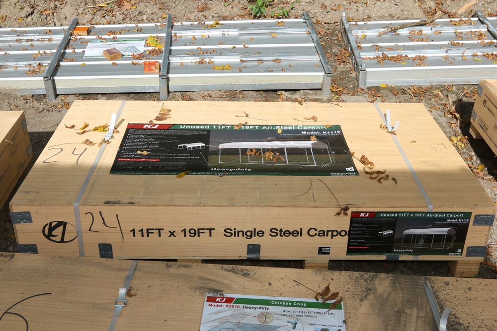 New KJ All-steel carport, 11'Wx20'Lx9'T, model K1119, in wood crate.
