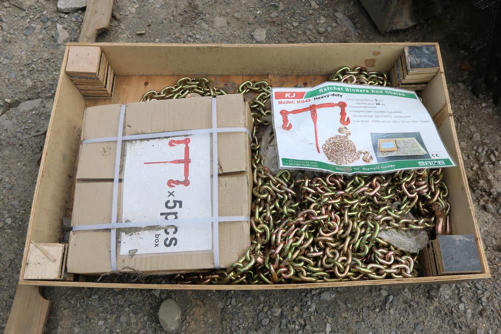 New ratchet binders and G43 chains with five binders and 10 3/8x14 ft transport chains model: KG43.