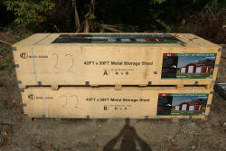 New 2025 Metal Storage Shed 42FT x 30FT Metal Storage Shed model K4230G, in wooden crate.