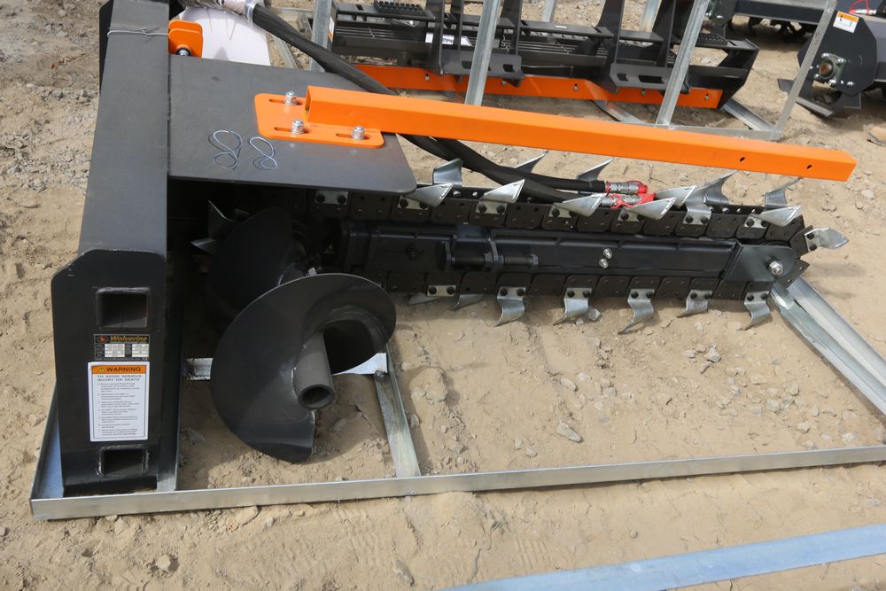 New 2025 Wolverine Skid Steer Trencher attachment model TCR-12-48H, trenching width 8", depth 48", clearing auger dia 15"