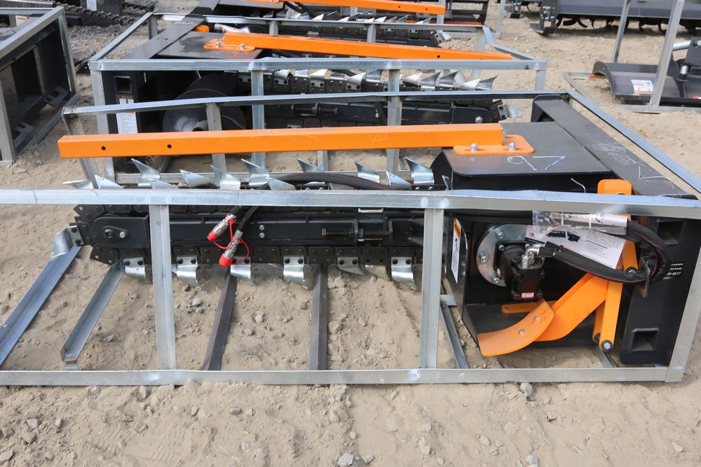 New 2025 Wolverine Skid Steer Trencher attachment model TCR-12-48H, trenching width 8", depth 48", clearing auger dia 15"