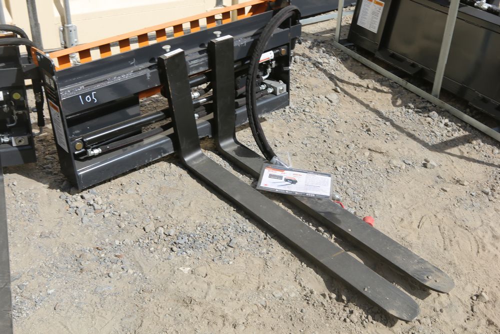 New 2025 Wolverine skid steer pallet fork attachment hydraulic adjustment model PFA-11-3300G, 48" fork adjustment.