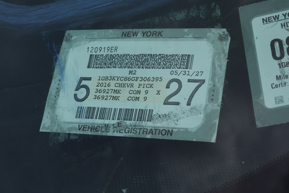2016 Chevrolet model 3500 Dump Truck 2 yd 4WD VIN: 1GB3KYC86GF306395. Odometer reading: 116000. Title and keys available. Seller reports: Operates as intended. Seller ID # 821-03.