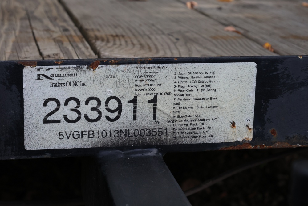 2021 Kaufman model Fbs3.5 Trailer 78" x 10' VIN: 5VGFB1013NL003551. Title and keys available. Seller ID # 020-22.