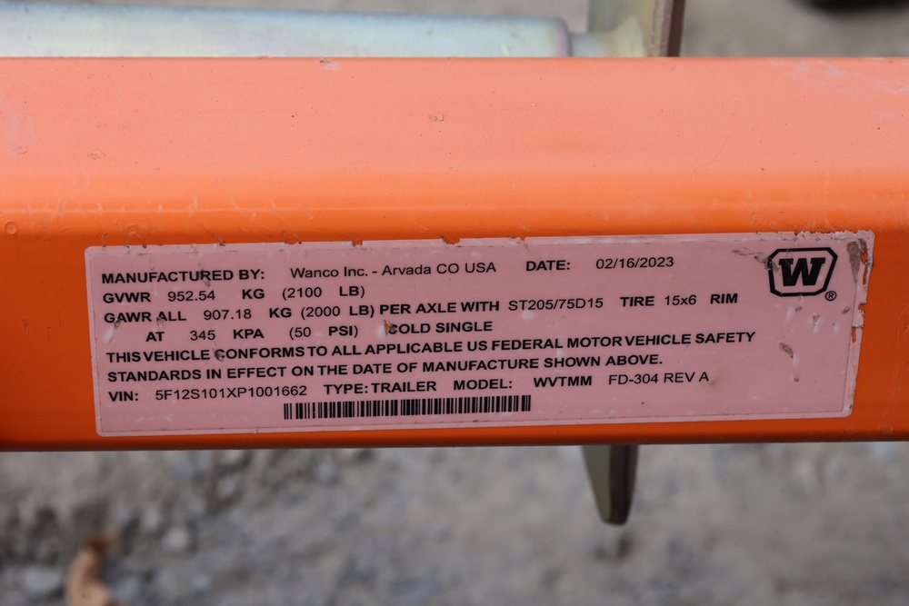 2023 Wanco model WVTMM-M towable message board PIN: 5F12S101XP1001662. Seller reports: Operates as intended. Seller ID # 1788-01.