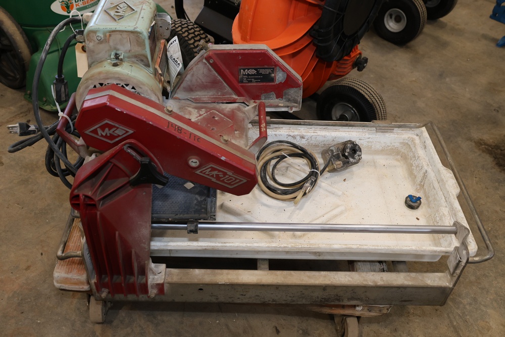 MK model MK101 10" Tile saw serial number 538. Seller reports: Operates as intended. Seller ID # 148-116.