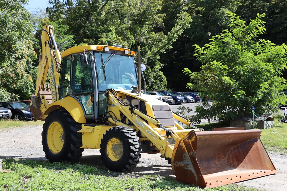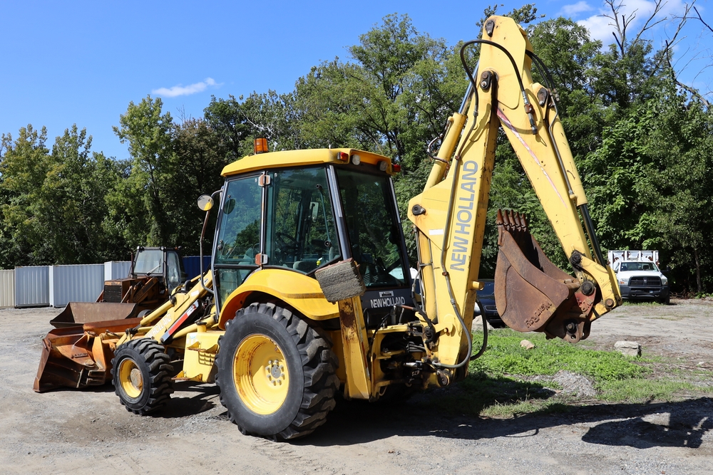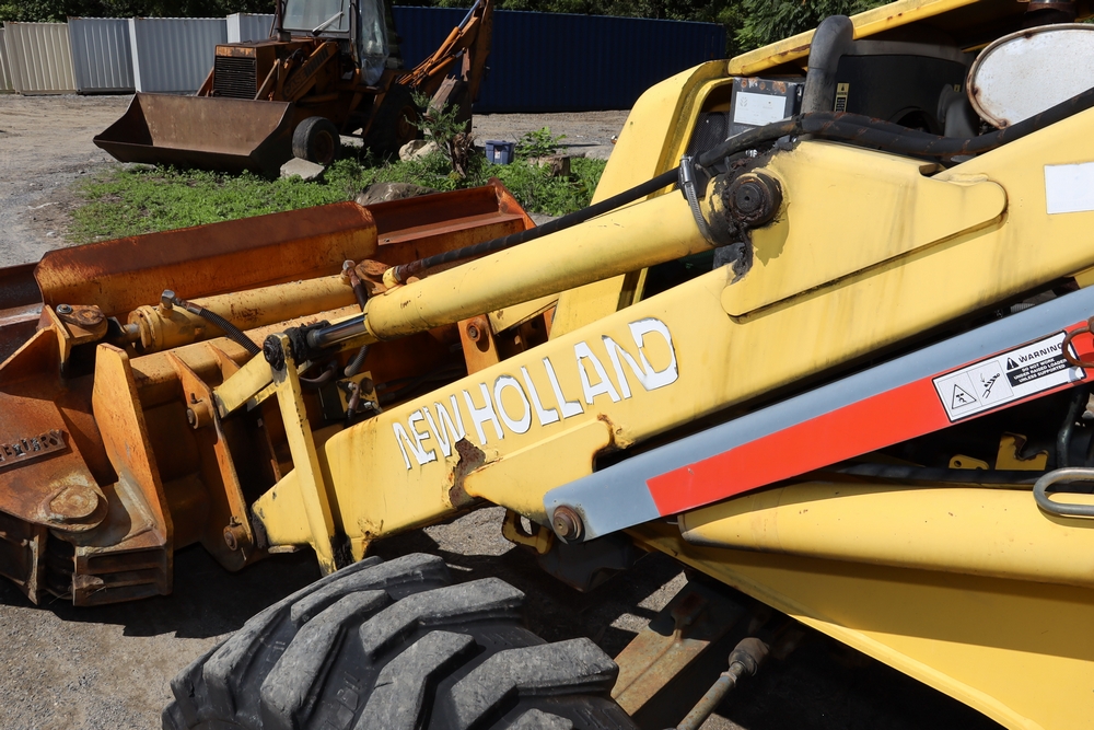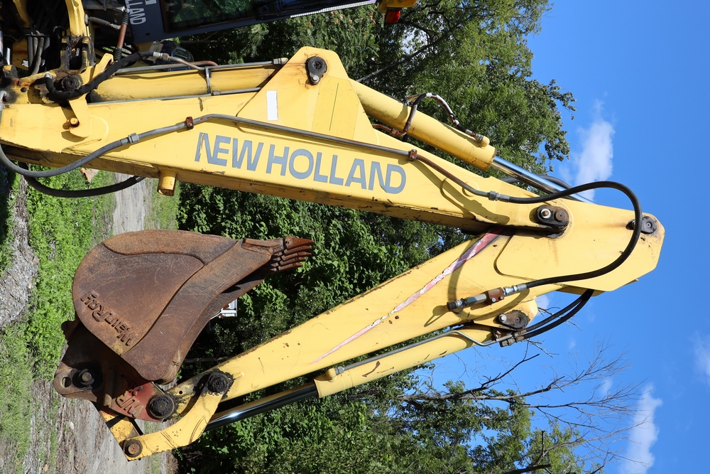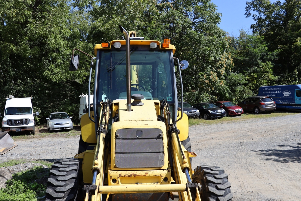 2001 New Holland LB110 Backhoe Loader. SN: 31033264. Hours reading: 4401. Runs, drives, operates. Equipped with Asbury 37110 loader bucket, Wain Roy backhoe bucket.