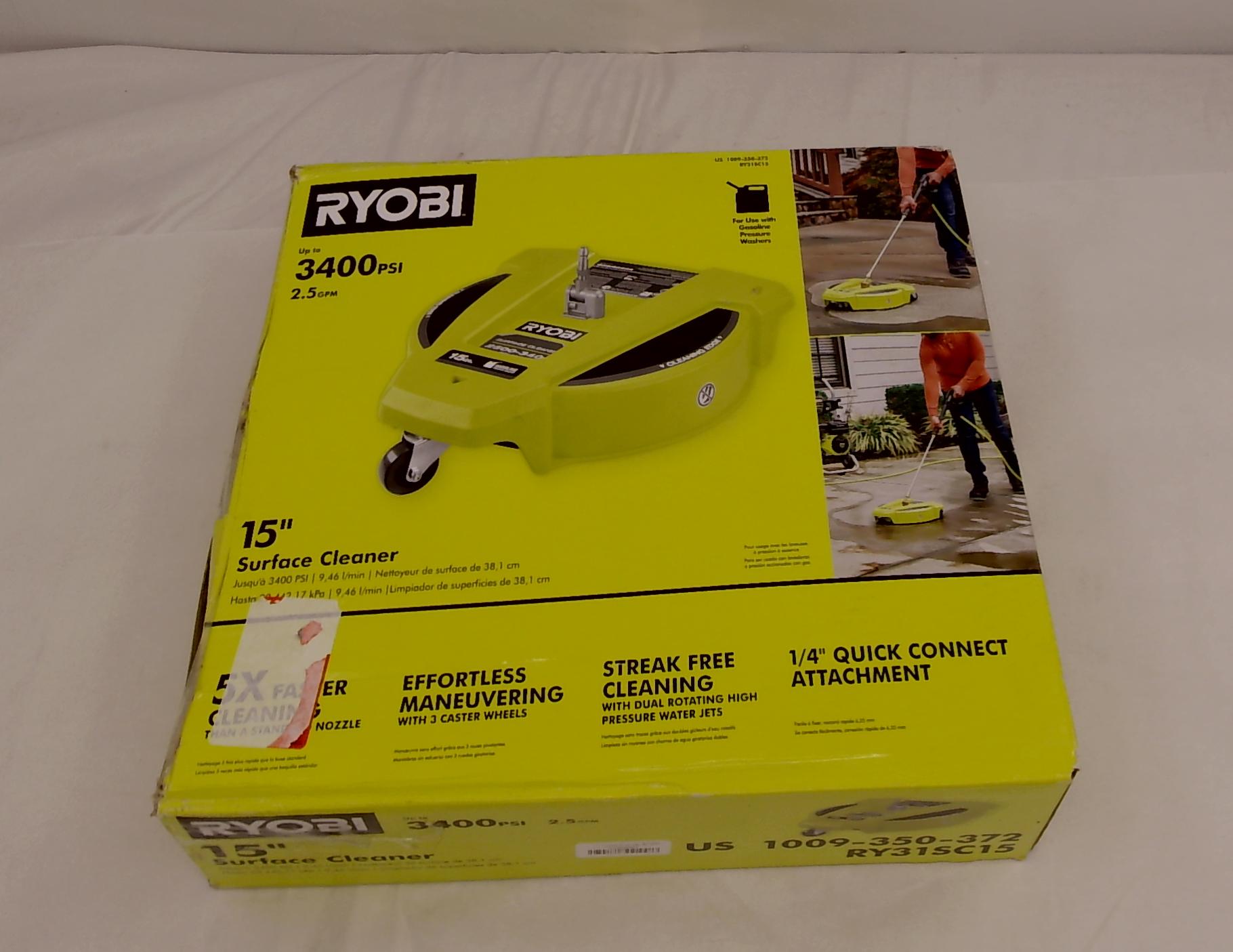 RYOBI 15 in. 3400 PSI Gas Pressure Washer Surface Cleaner with Caster Wheels, Yellow, RY31SC15