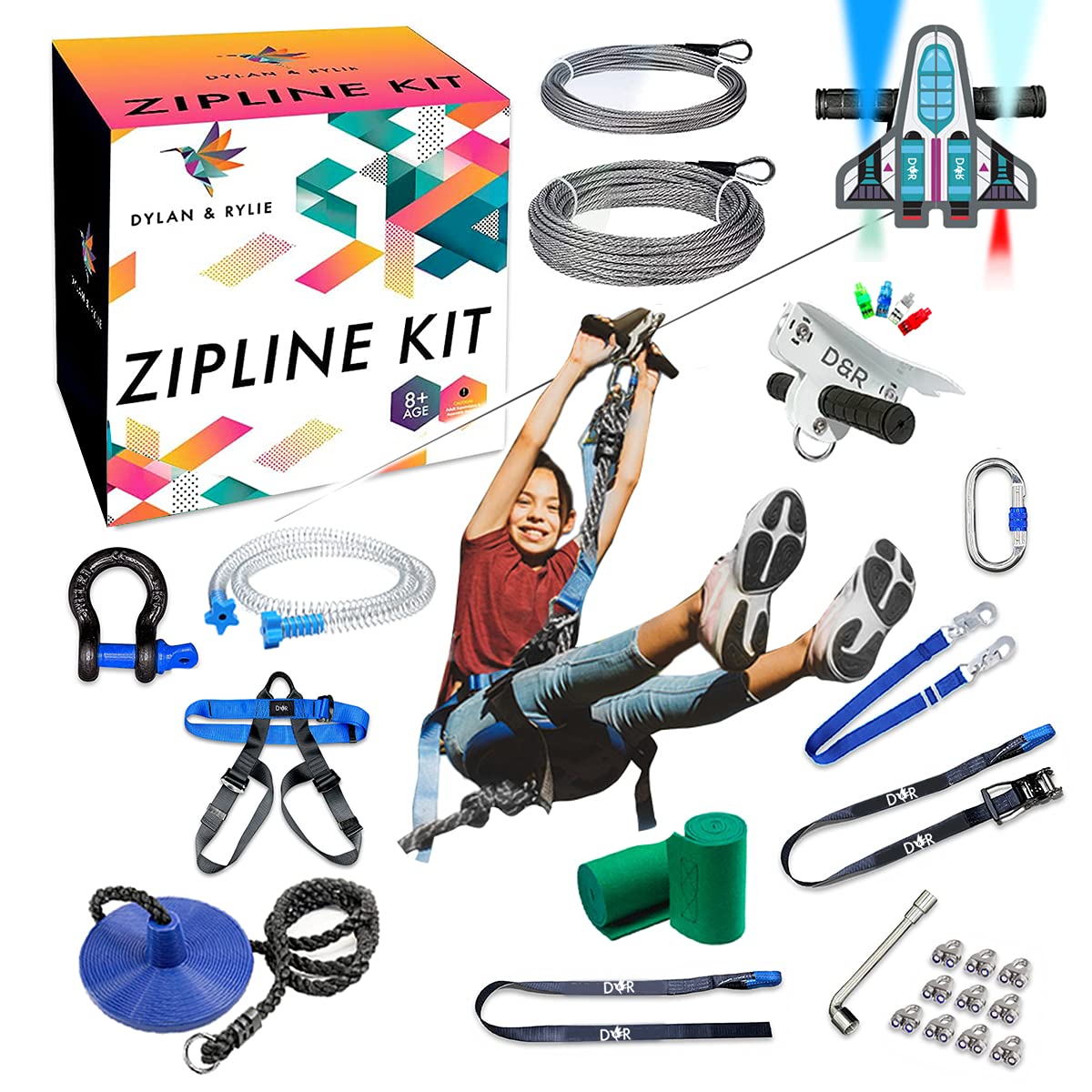 Zipline Kit - 120ft Zip Line With Brake, Safety Harness, Seat, Perfect For Backyard Fun, Kids & Adults