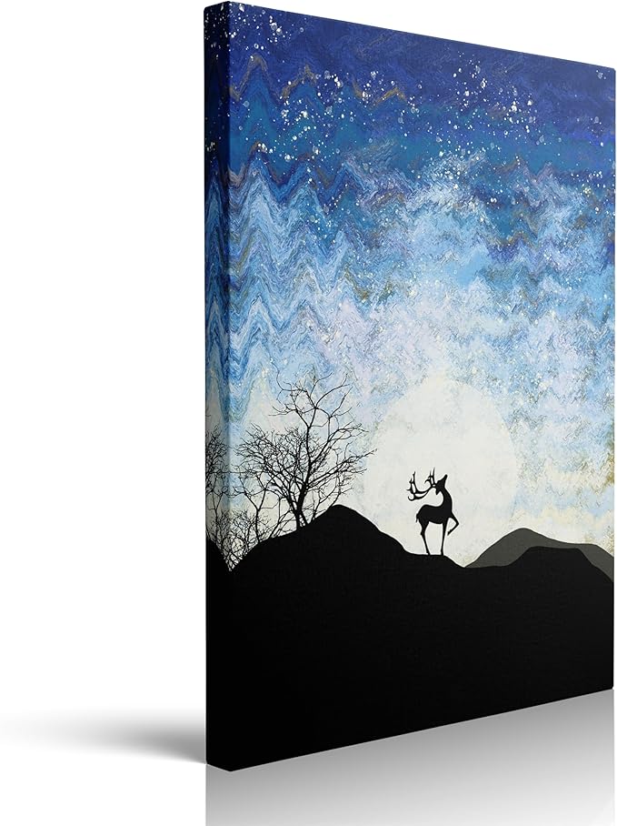 Framed Black And White Elk Forest And Mountain Landscape Canvas Wall Art Country Wildlife Animal Deer Nature Scene Decor Poster For Living Room Bathroom Home Office Artwork Gift Ready To Hang