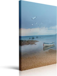 Framed Blue Beach Ocean Seagull In The Sky Canvas Wall Art Boat On The Sea Lake Coastal Nature Decor Poster For Living Room Bathroom Home Office Artwork Gift Ready To Hang (12"x16")