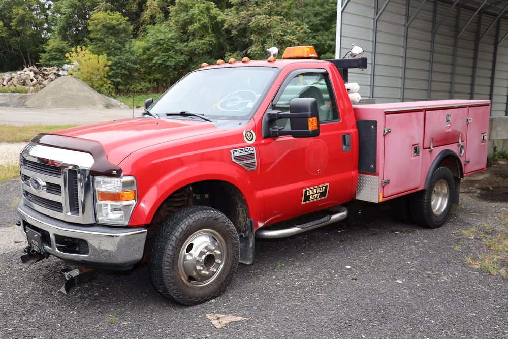 Items include 1986 Ford LN8000 Water Truck, 2008 Ford F-350 Super Duty Utility Truck with plow, and 1997 International 4800 Dump Truck 4X4. Items located in Poughquag, NY.