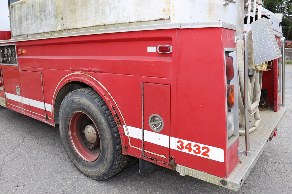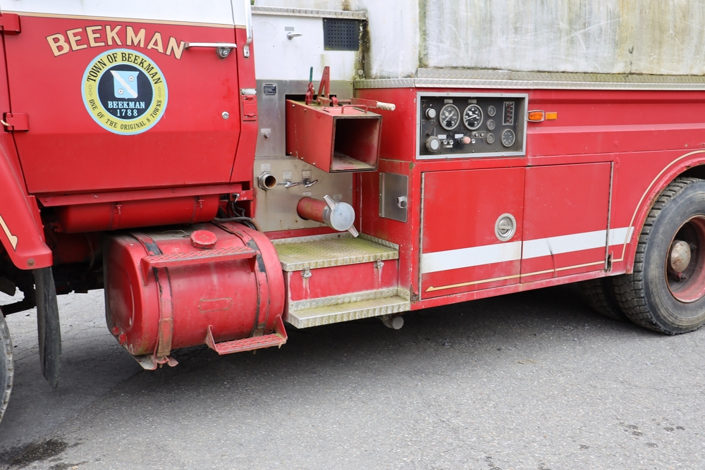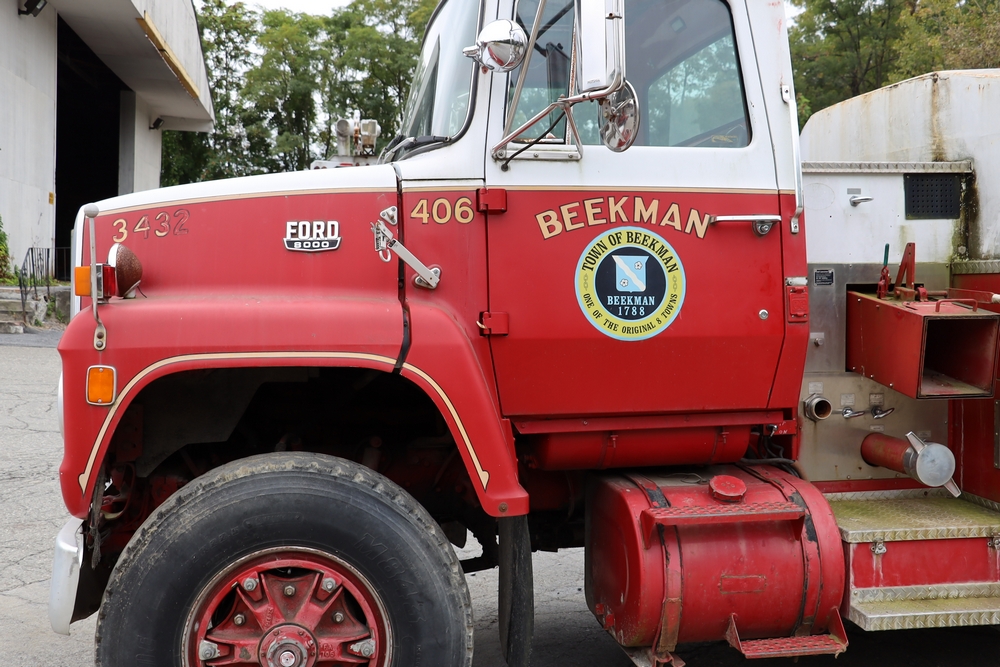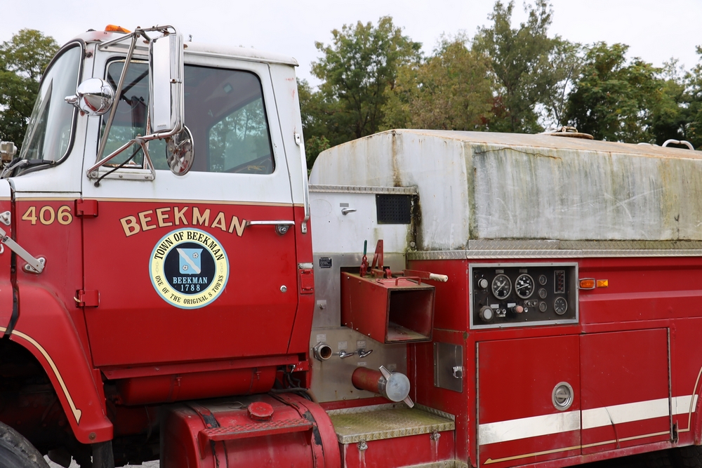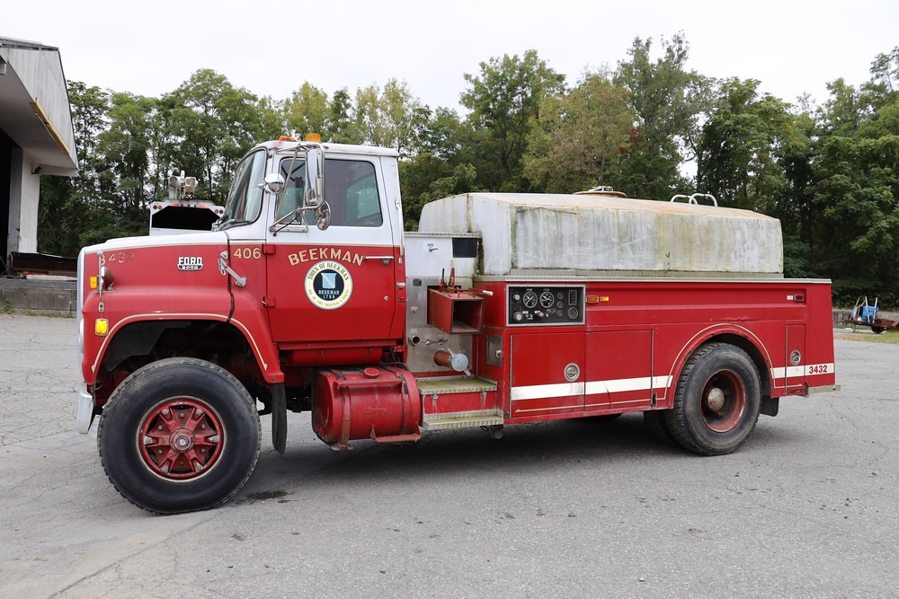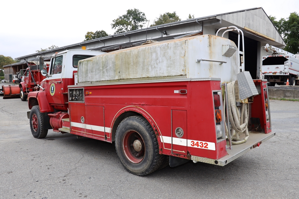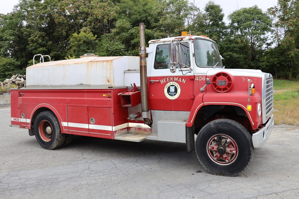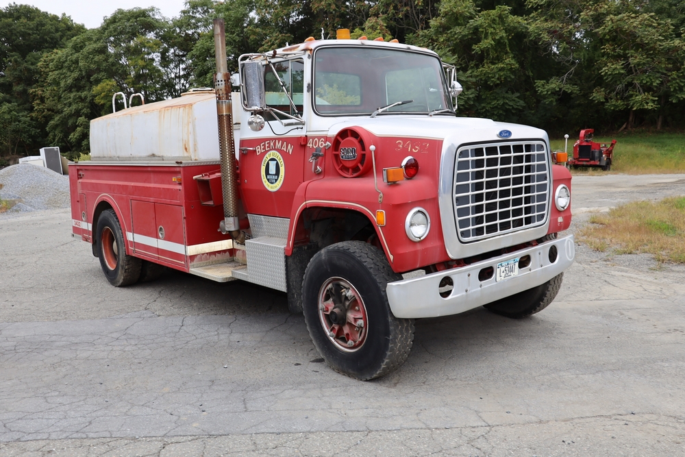 Items include 1986 Ford LN8000 Water Truck, 2008 Ford F-350 Super Duty Utility Truck with plow, and 1997 International 4800 Dump Truck 4X4. Items located in Poughquag, NY.