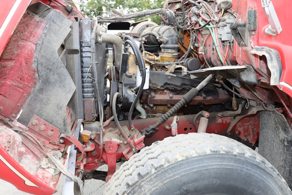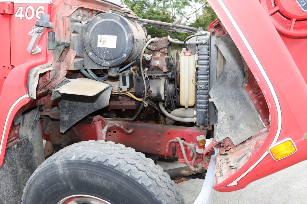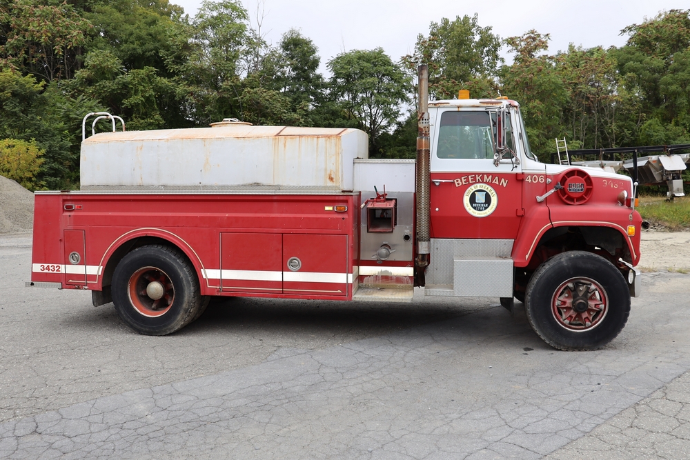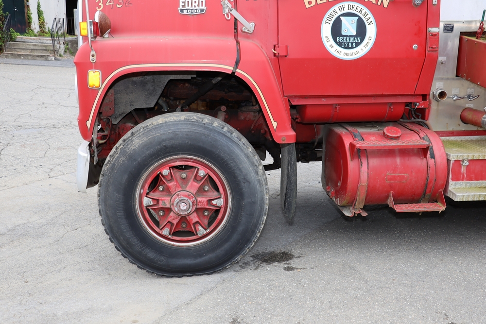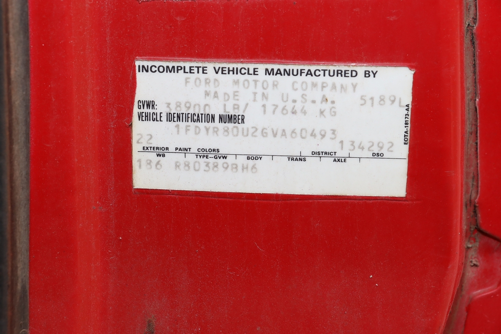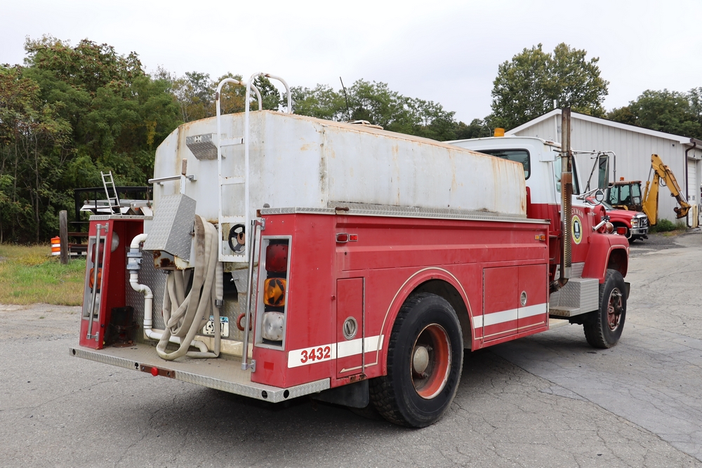 1986 Ford LN8000 Water Truck. VIN: 1FDYR80U2GVA60493. Body: Chassis 2D. Engine: 10.4L V8 DI Diesel. Odometer reading: 16345. Hours reading: 2616 Hrs. Seller reports: Runs, drives, holes in water tank (leaks). Auto chains, Chelsea PTO. Title & key available.
