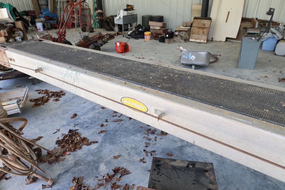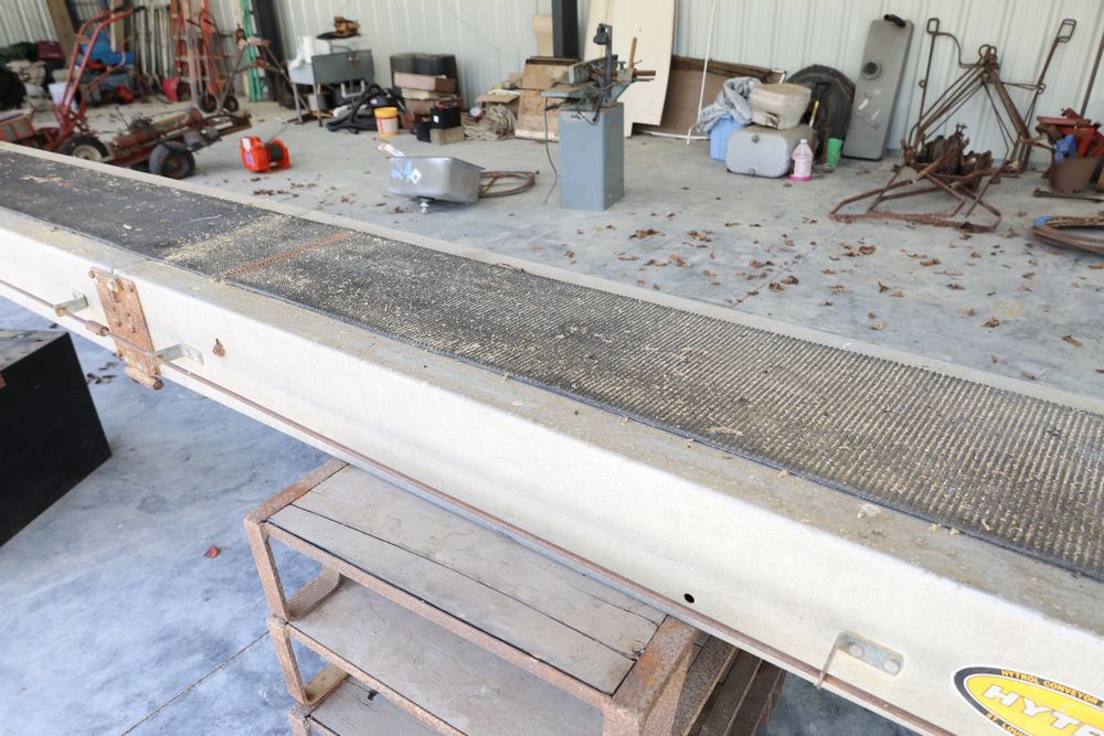 Hytrol model R reversable folding conveyor 21' long. Seller reports in working condition.