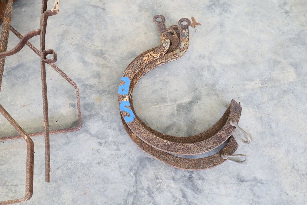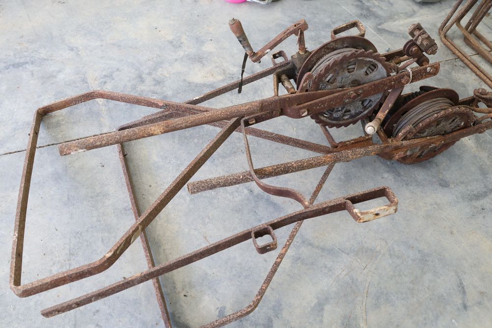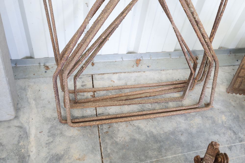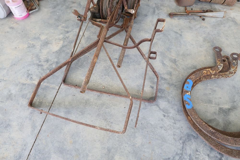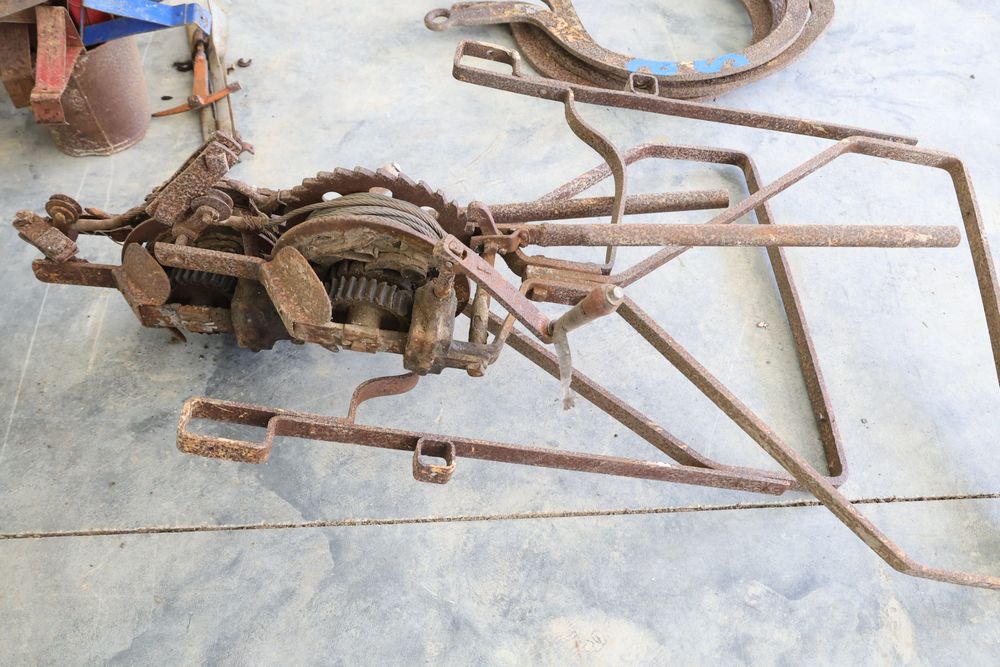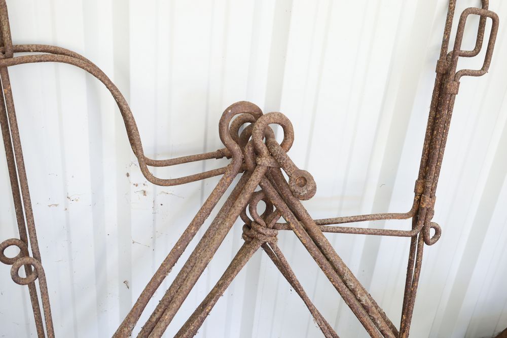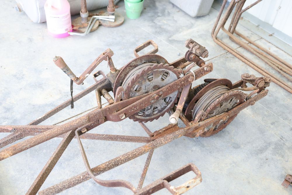 Swing staging equipment including extra hooks and stirrups.