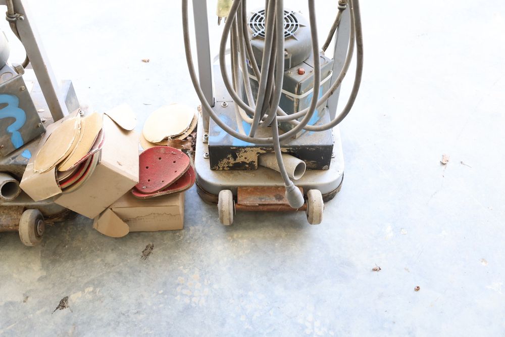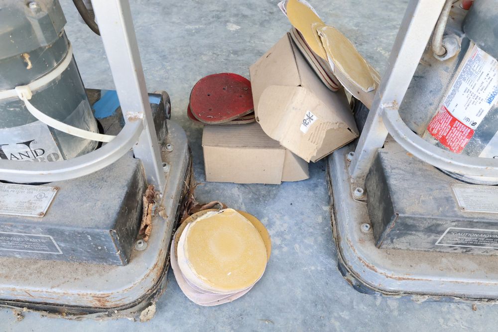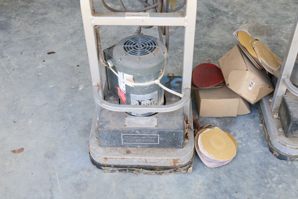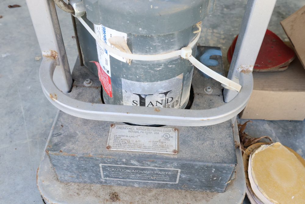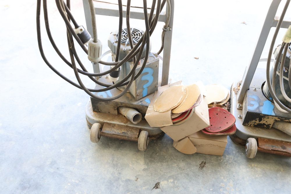 Two Cherryhill Manufacturing Corp model 146-C floor sanders with pads. Seller reports in working condition.