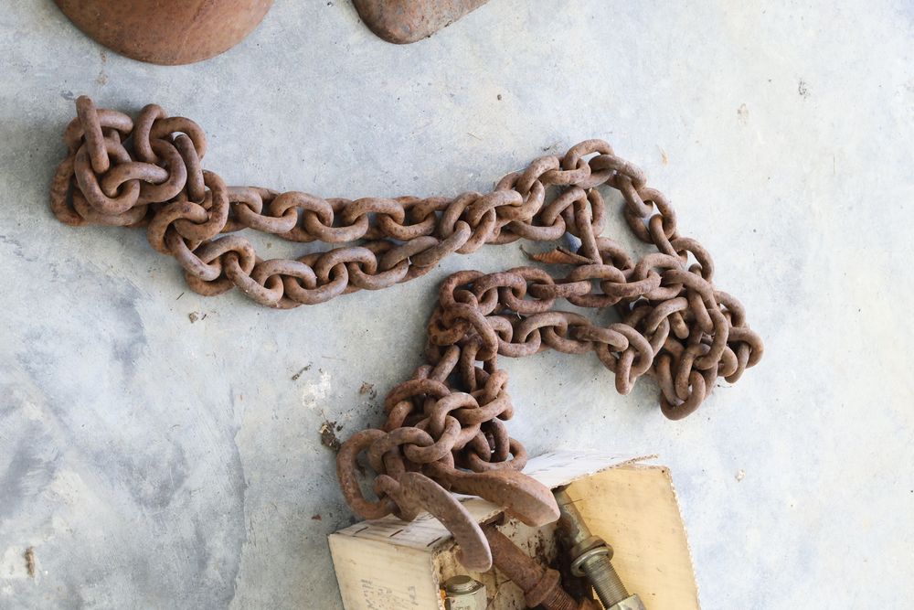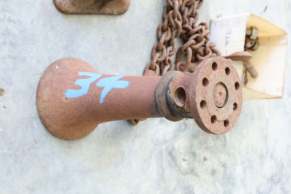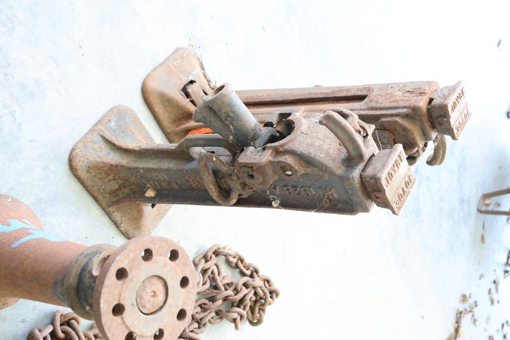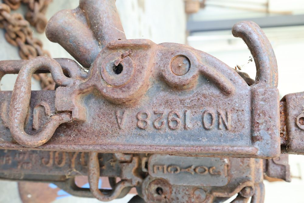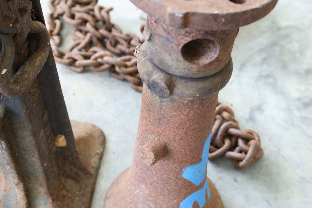 Three jacks including two 15 ton Joyce jacks number 1928A, heavy duty 1/2" chain, and assorted tractor hardware.