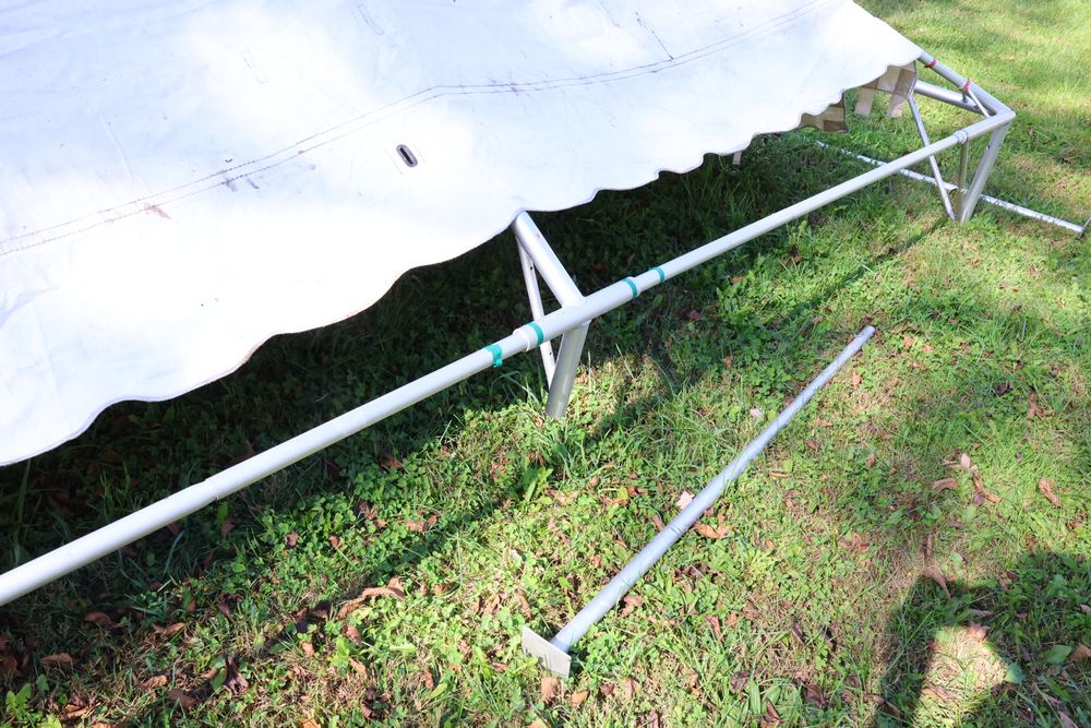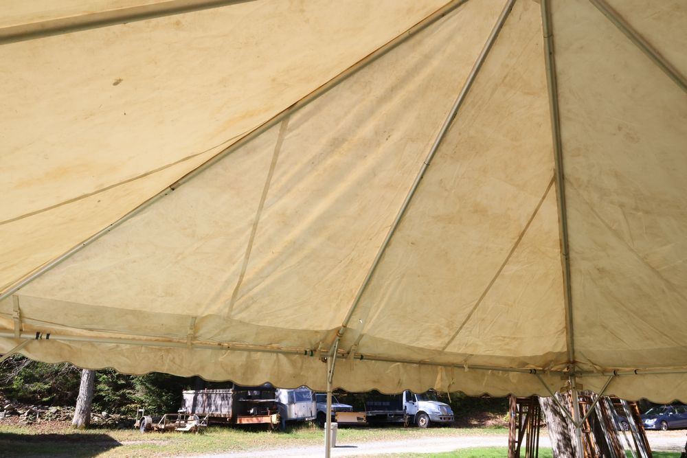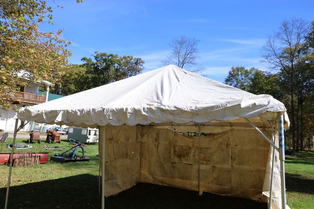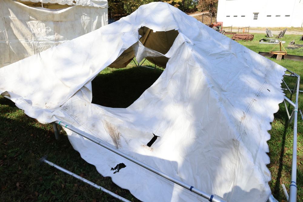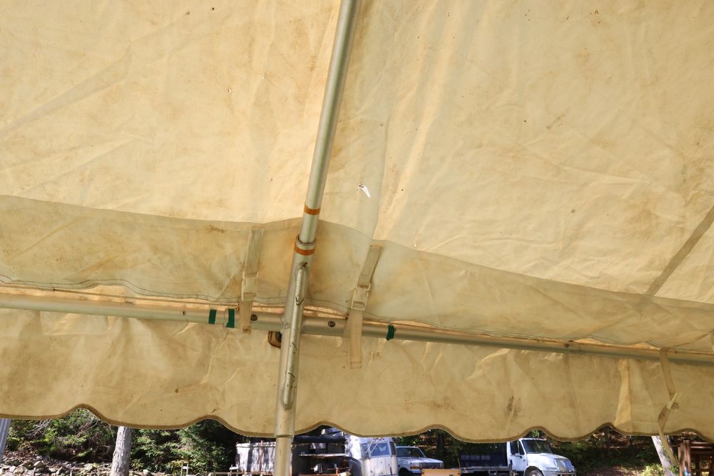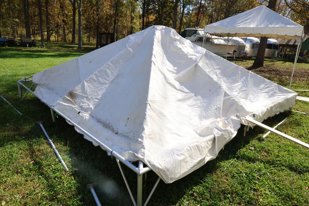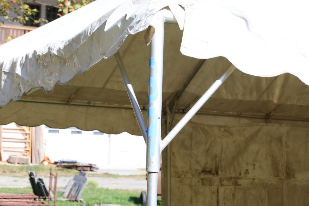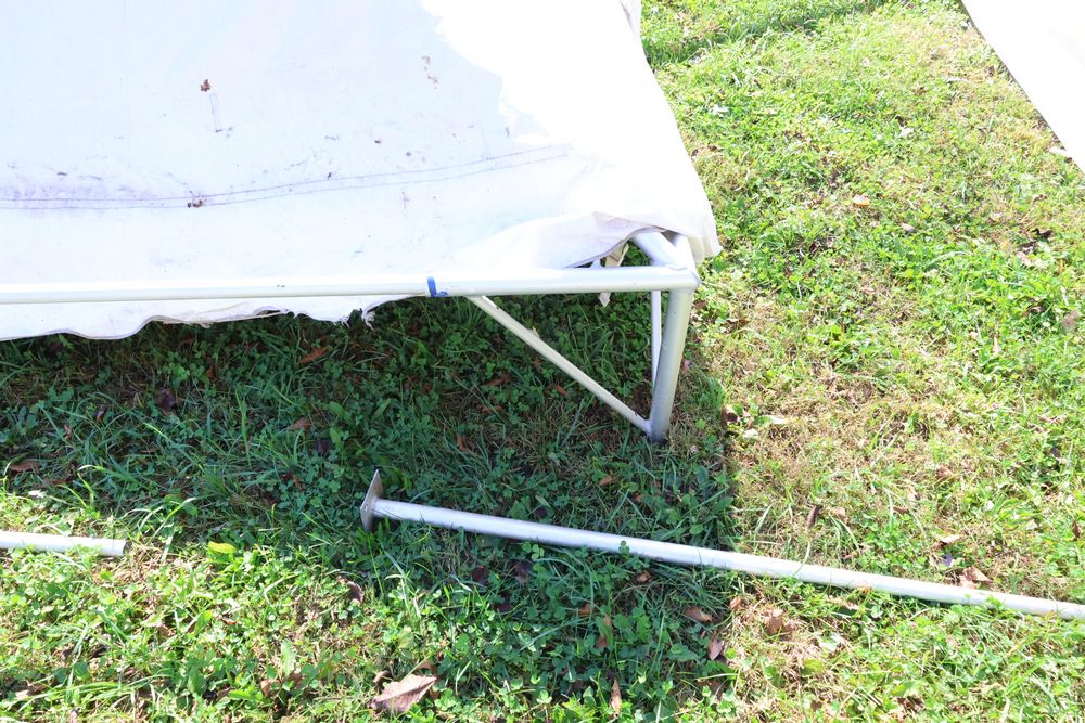 Two Eurica commercial aluminum frame tents, each 15' x 15'. See photos for condition.