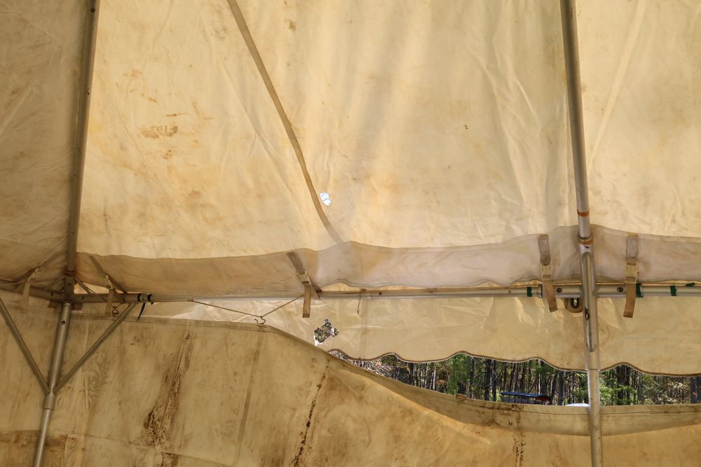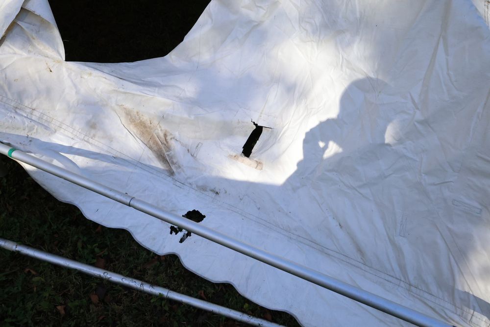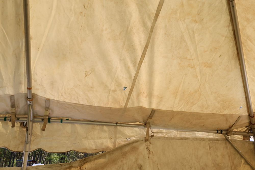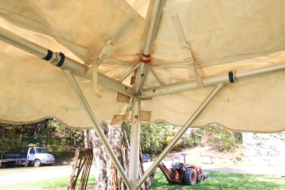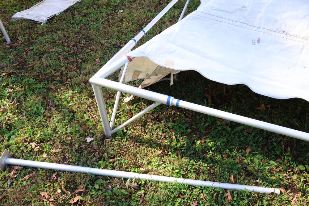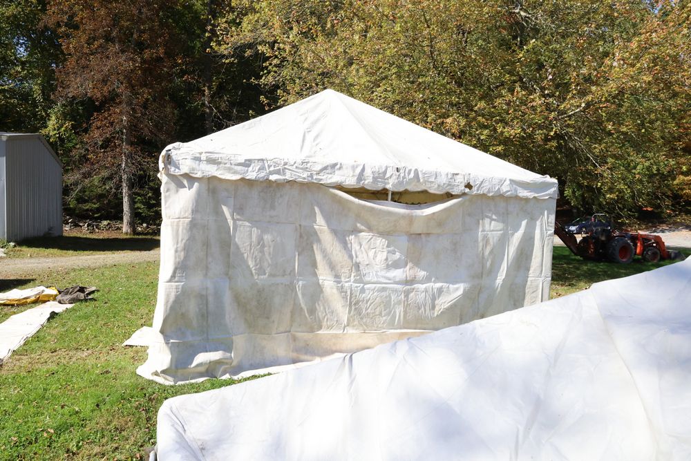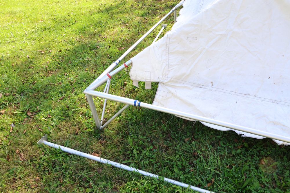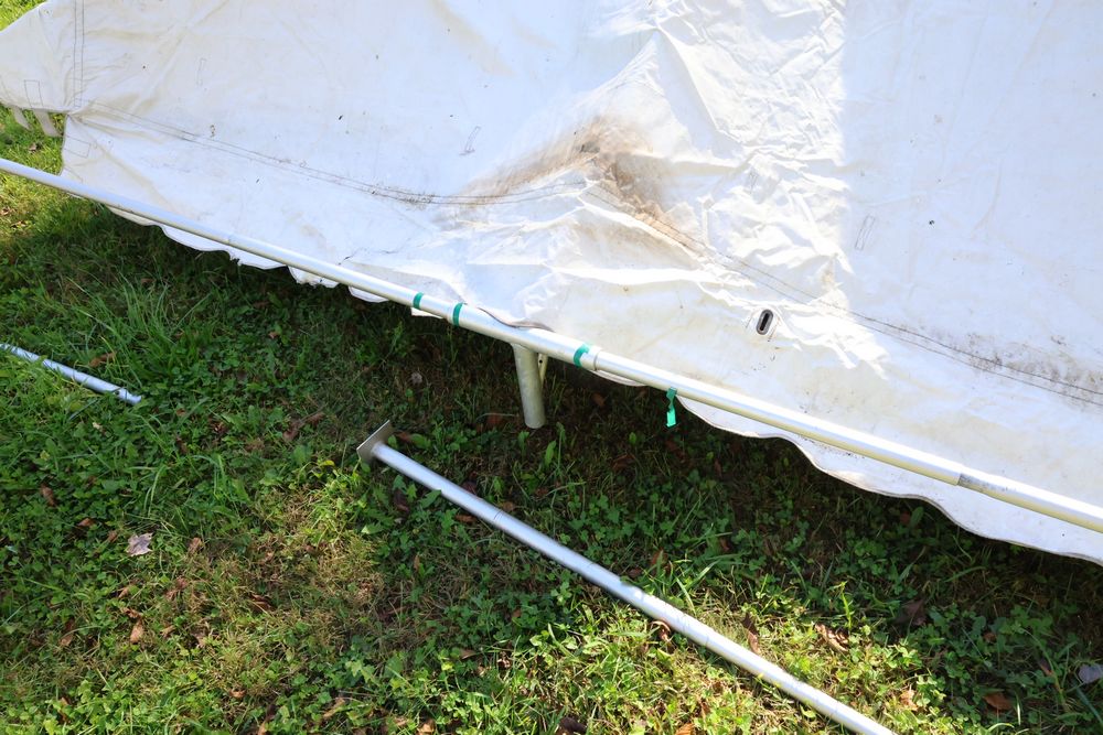 Two Eurica commercial aluminum frame tents, each 15' x 15'. See photos for condition.