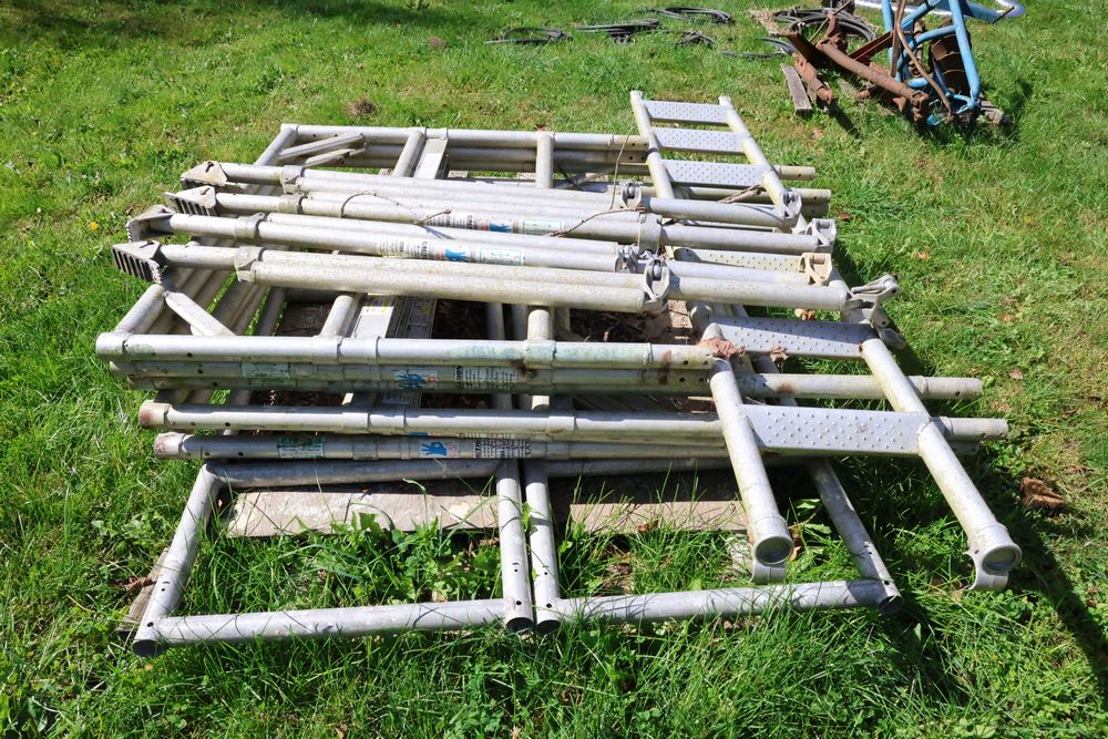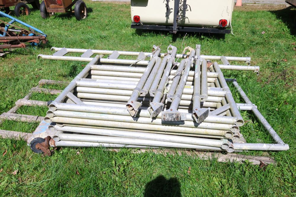 Items include Kubota L3710 HST tractor with Kubota LA682 front end loader, Case 585 tractor, 1988 Eager Beaver 9 ton tag-a-long tri-axle trailer, 15' English travel trailer,Ford post hole diggers, Ford model 909 5' rotary cutter industrial brush hog, Ford 6' back blade, 7' power angle snow plow set up for Bobcat quick change, Hytrol model R reversable folding conveyor 21' long, and more. Items are located in Staatsburg, NY.