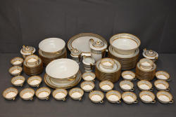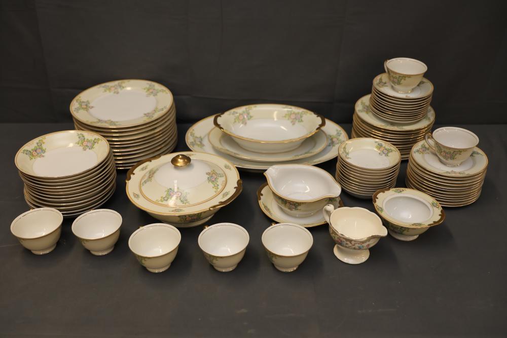 Noritake China Set with Floral and Gold Accents. A matching set of fine china featuring floral designs and gold accents. The set includes various plates, cups, bowls, serving pieces, and other items as shown in the images. Appears in used condition with wear consistent with use and age. Pickup only.
