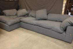 RH Gray Upholstered Sectional Sofa With Loose Cushions. This sectional sofa features a gray fabric upholstery, loose cushions, and modular design for versatile use. Ideal for comfortable seating and lounging. 159"L Pickup only.
