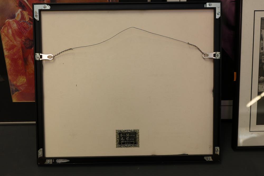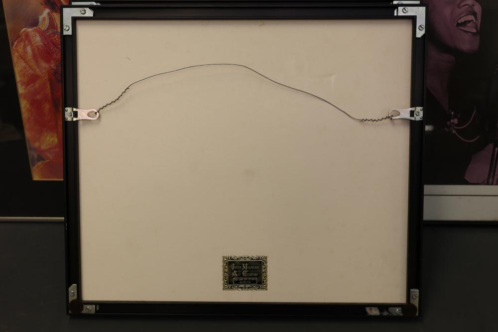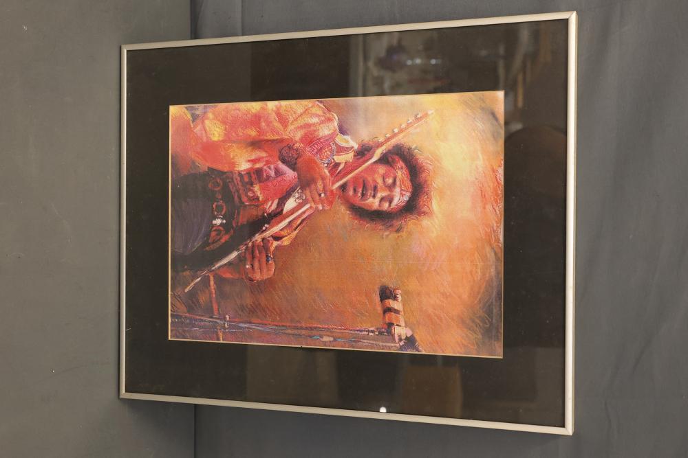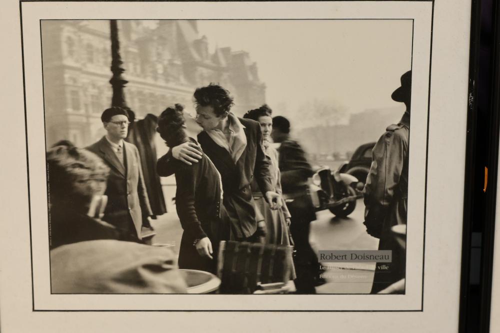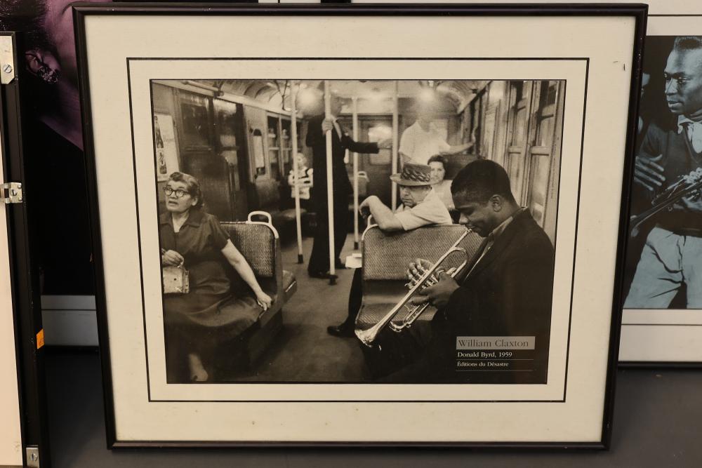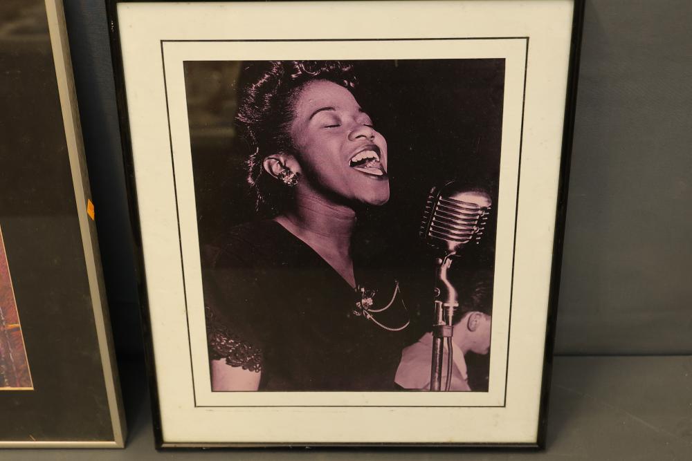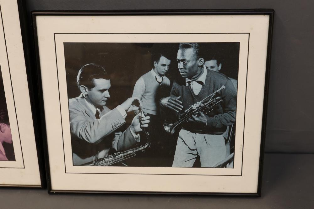 Framed Art Prints Featuring Musicians and Iconic Photography. Includes works by Robert Doisneau and William Claxton, along with other pieces depicting notable figures. Frames are predominantly black with hanging wire secured on the reverse. Pickup only.