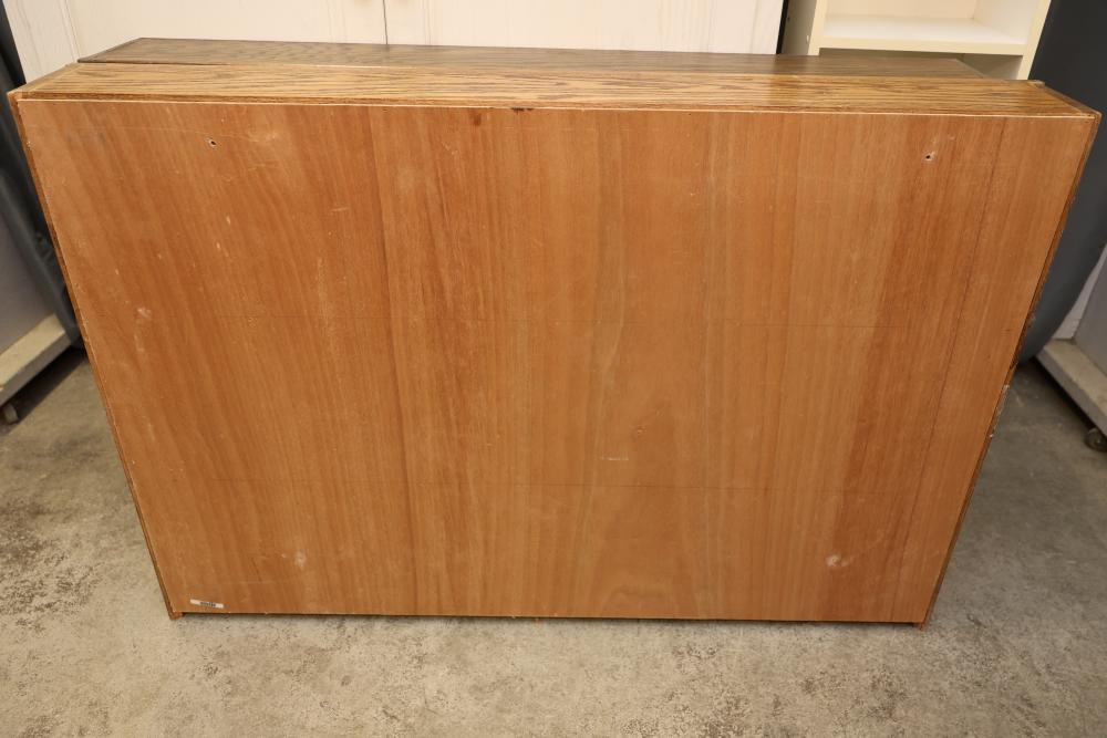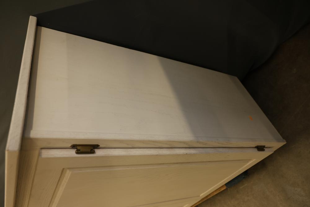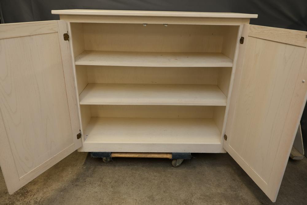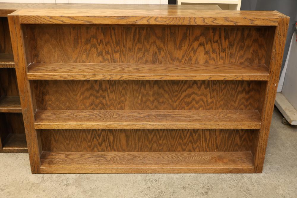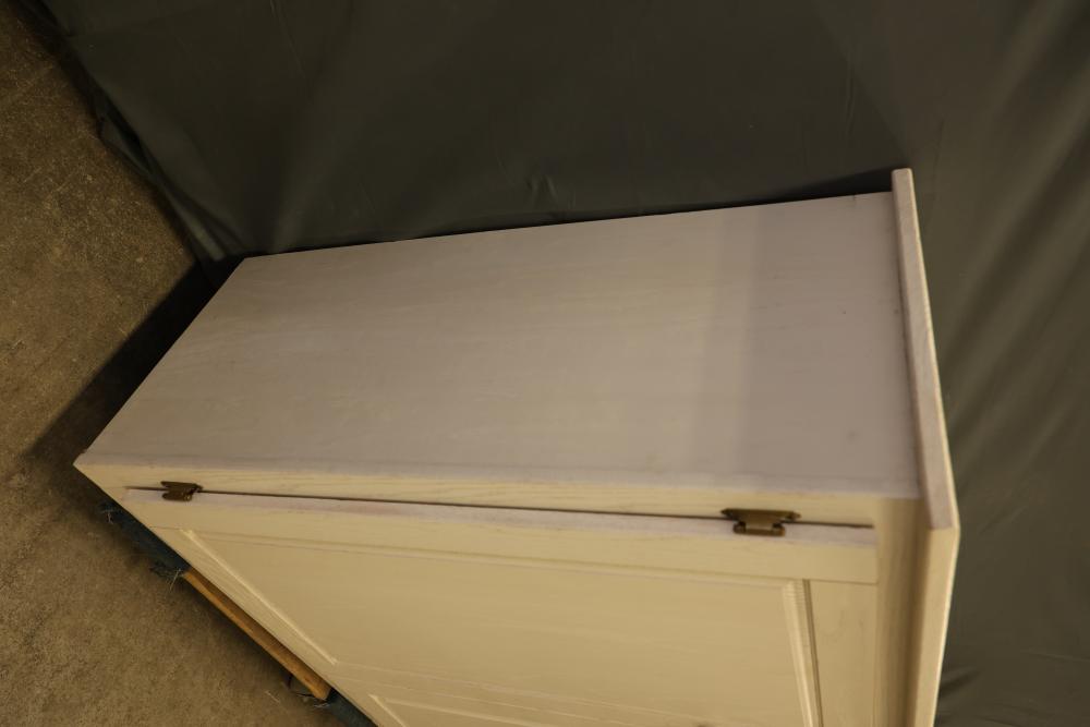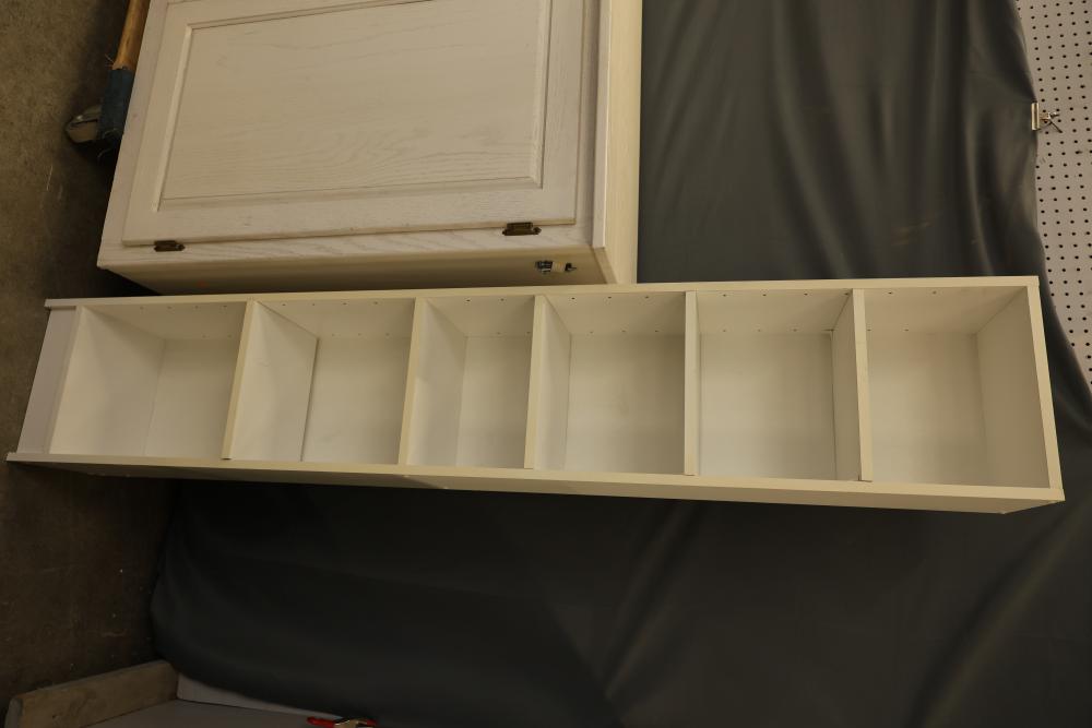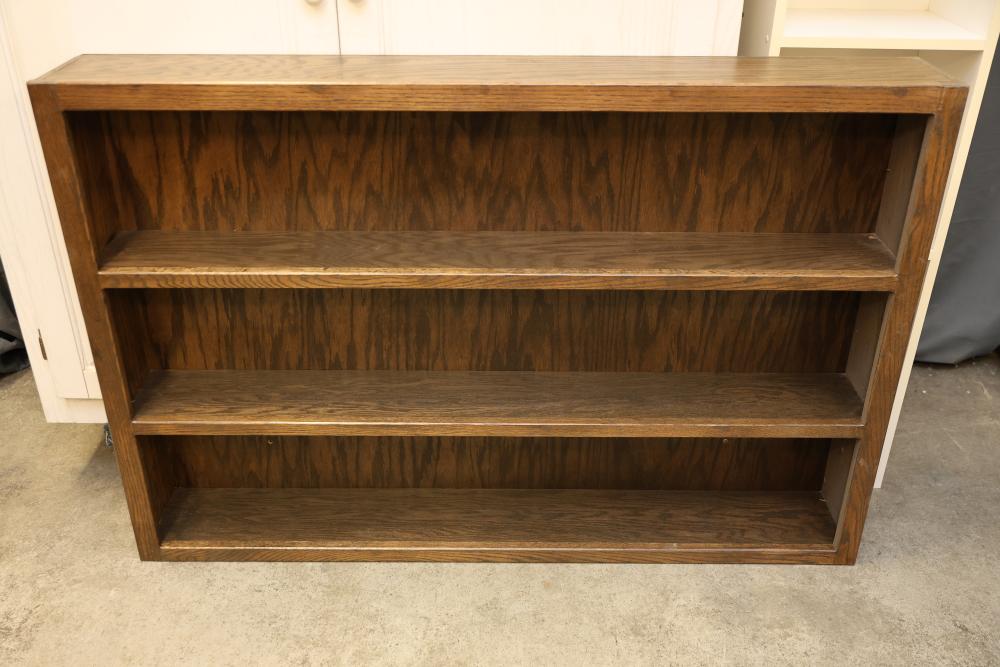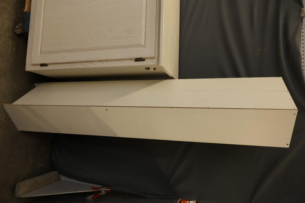 White Cabinet and Two Bookshelves, Multiple Sizes. Includes white cabinet, 46"Wx18"Dx40"H, tall white bookshelf, 13"Wx9.5"Dx71"H, and smaller wooden bookshelf, 48"Wx7"Dx32"H. Pickup only.