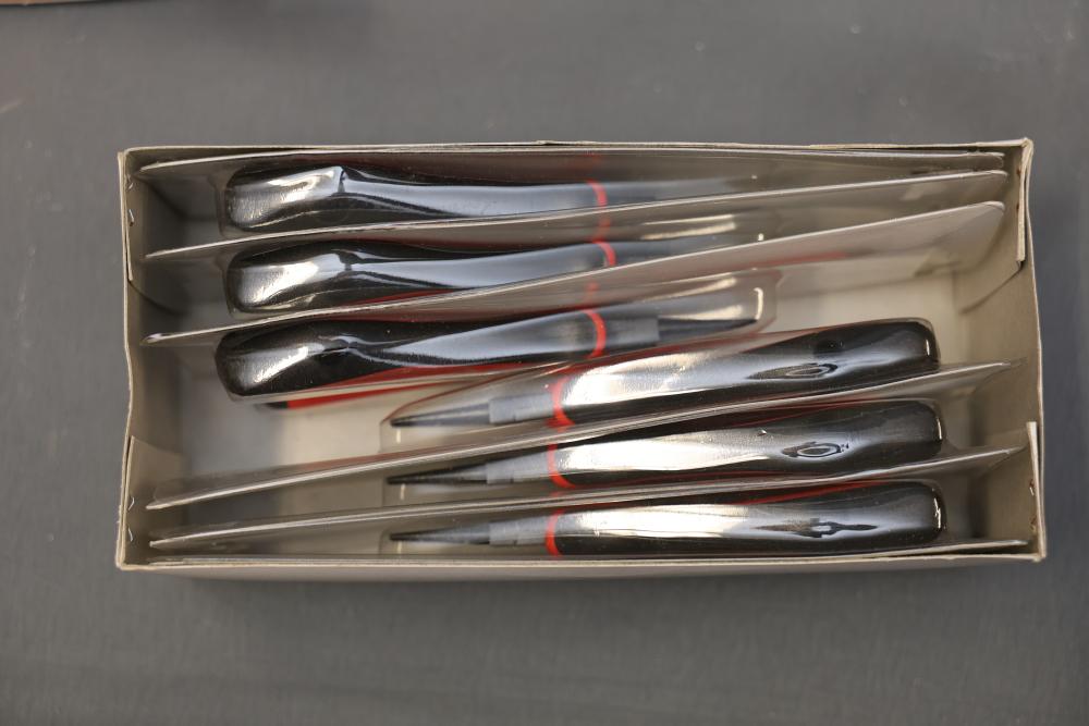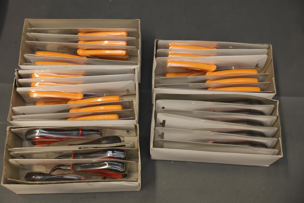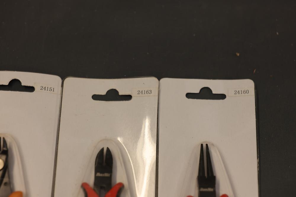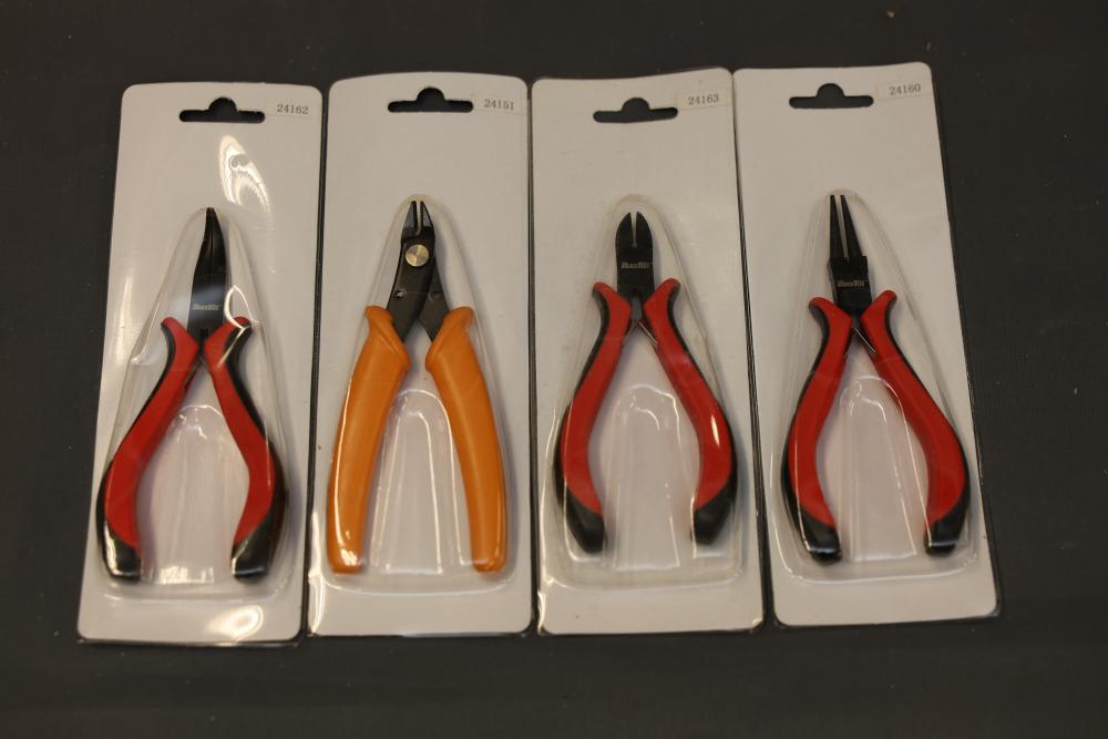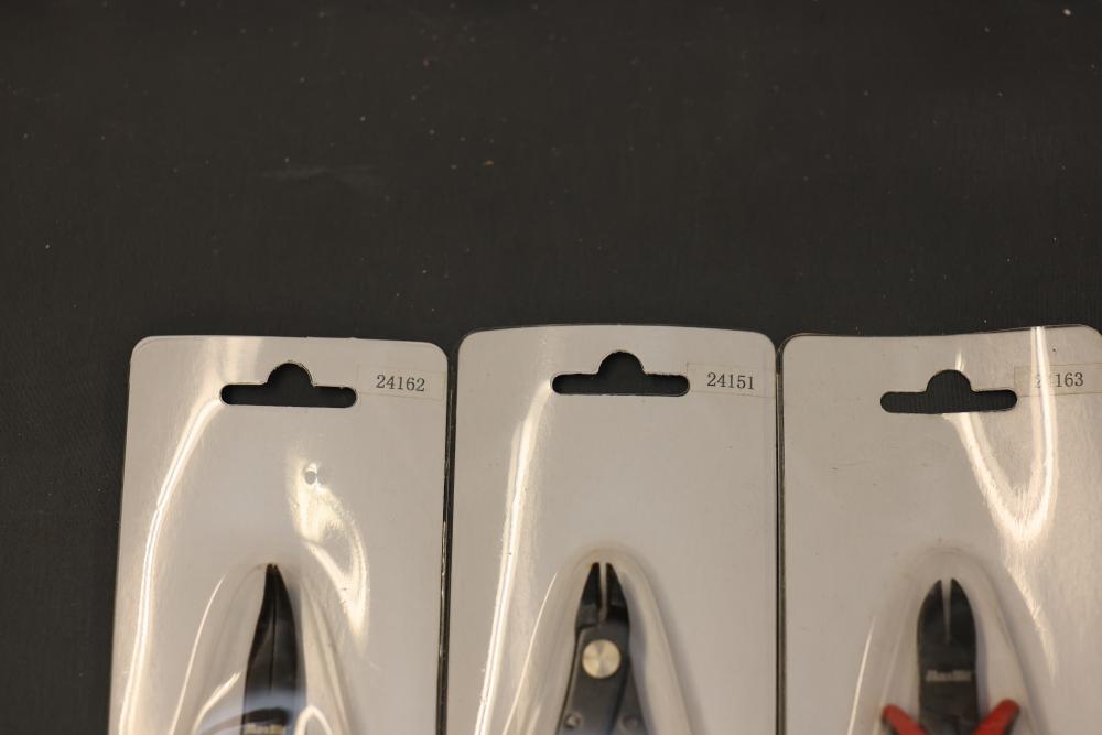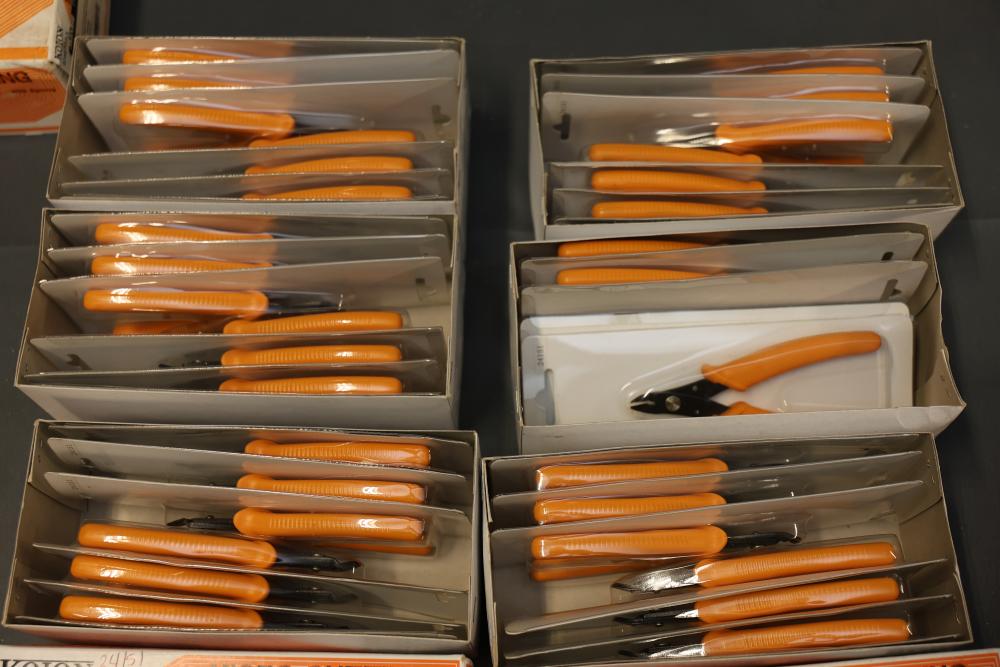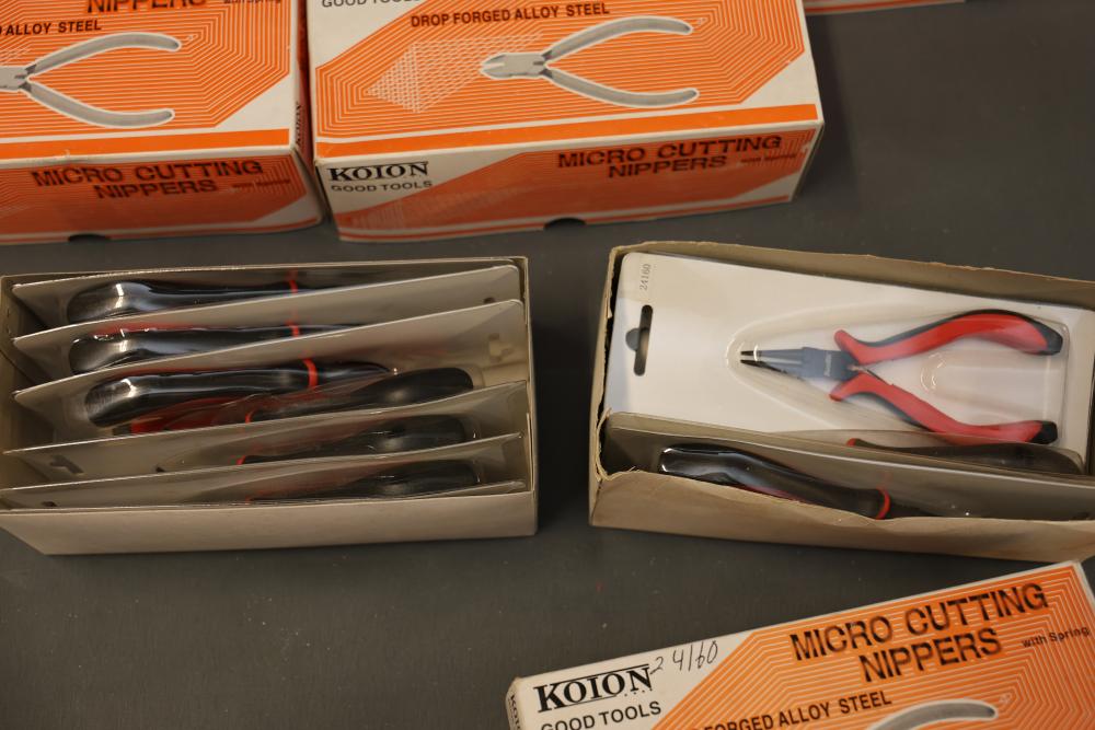 Koion Micro Cutting Nippers and Tools in Original Packaging. Includes multiple sets of cutting tools in black, red, and orange handles, stored in original boxes and blister packaging. Tools are made of drop forged alloy steel. Some sets are boxed, others are individually packaged. Pickup only.