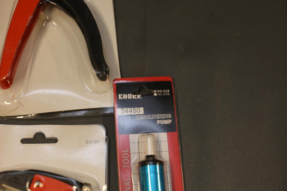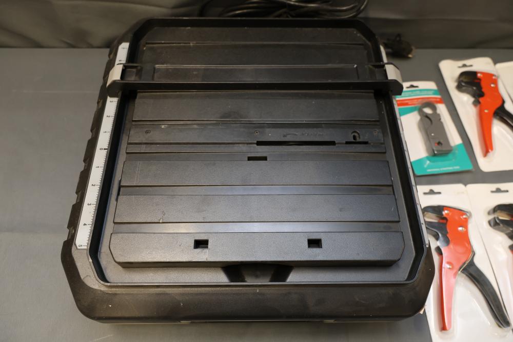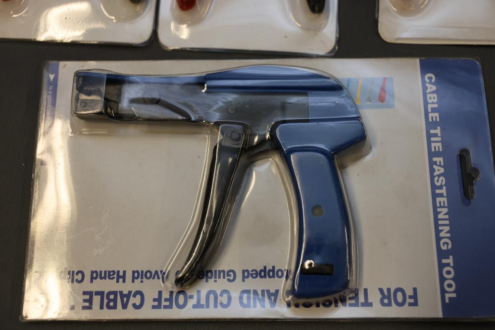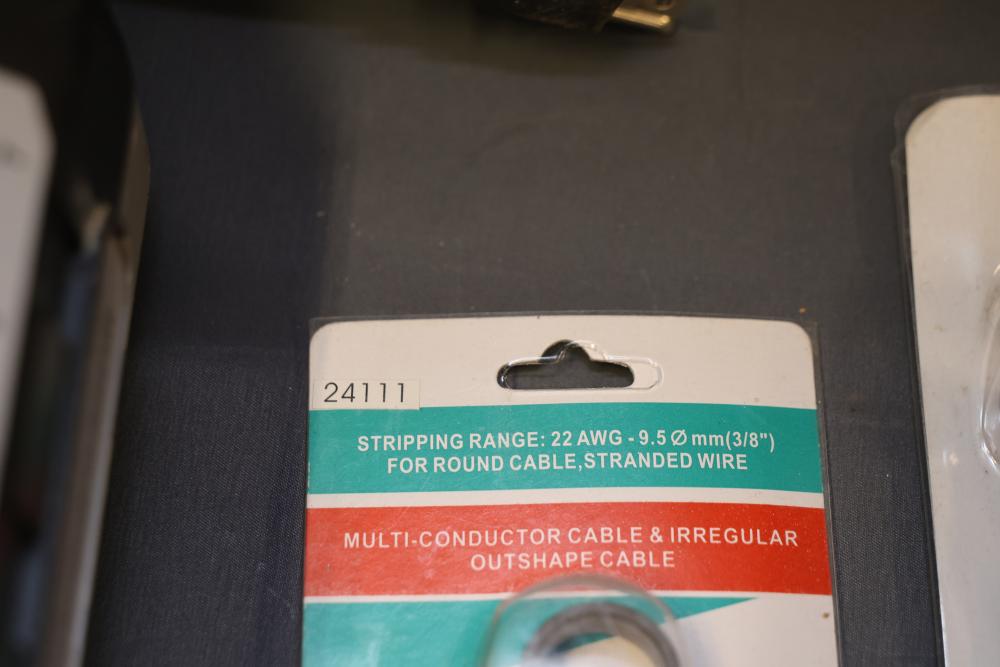 Tools Including Wire Strippers, Cable Tie Fastening Tool, and Power Tool System. Items include multiple wire strippers in packaging, a cable tie fastening tool, a hydraulic pump, and a power tool system with components and instructions. Pickup only.