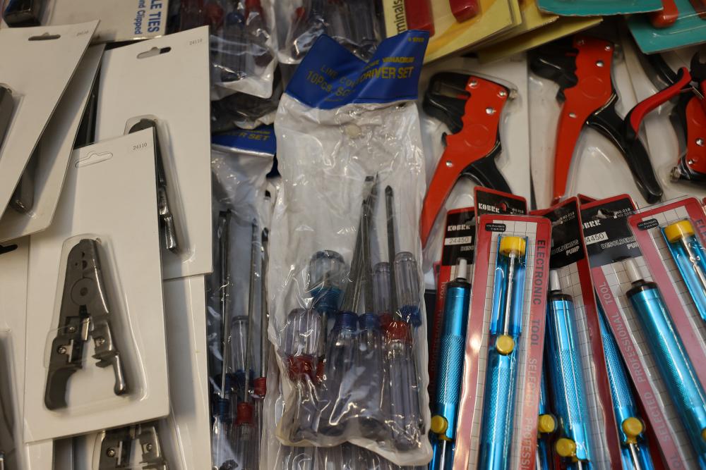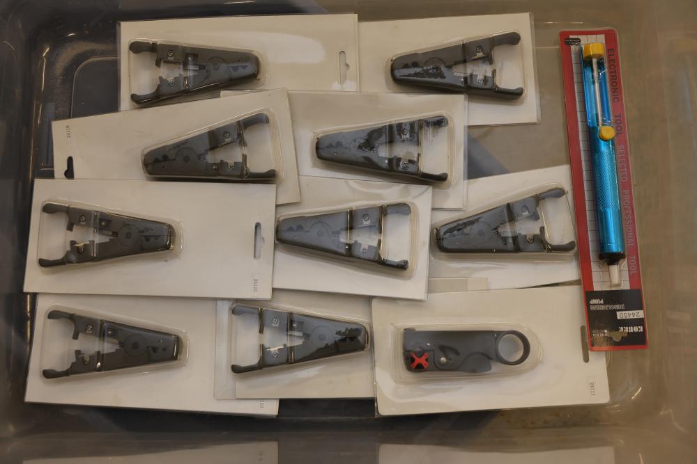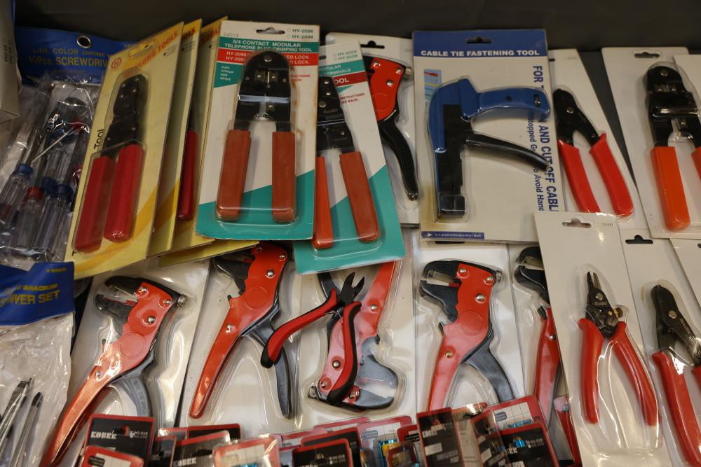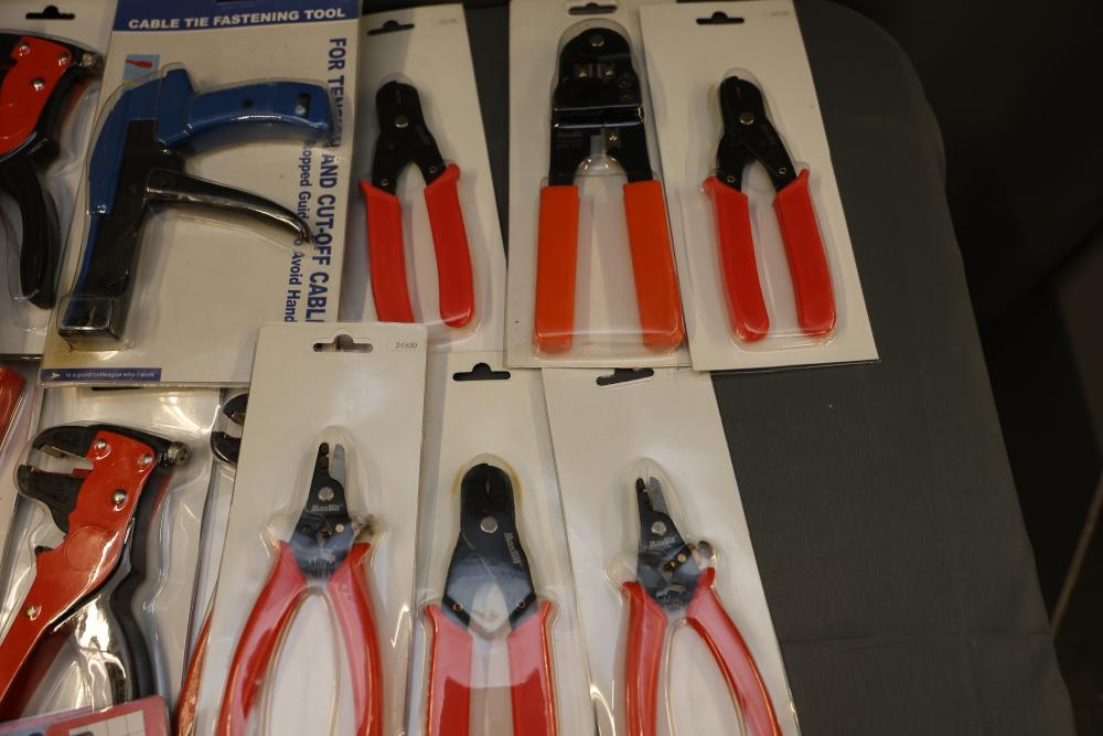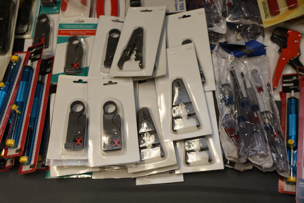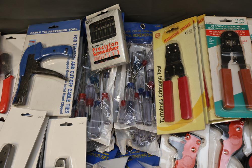Tools Including Soldering Irons, Pliers, and Screwdrivers. Includes various soldering irons, wire strippers, precision screwdrivers, crimping tools, and other hand tools. Items are both packaged and loose, with a variety of sizes and styles. Pickup only.