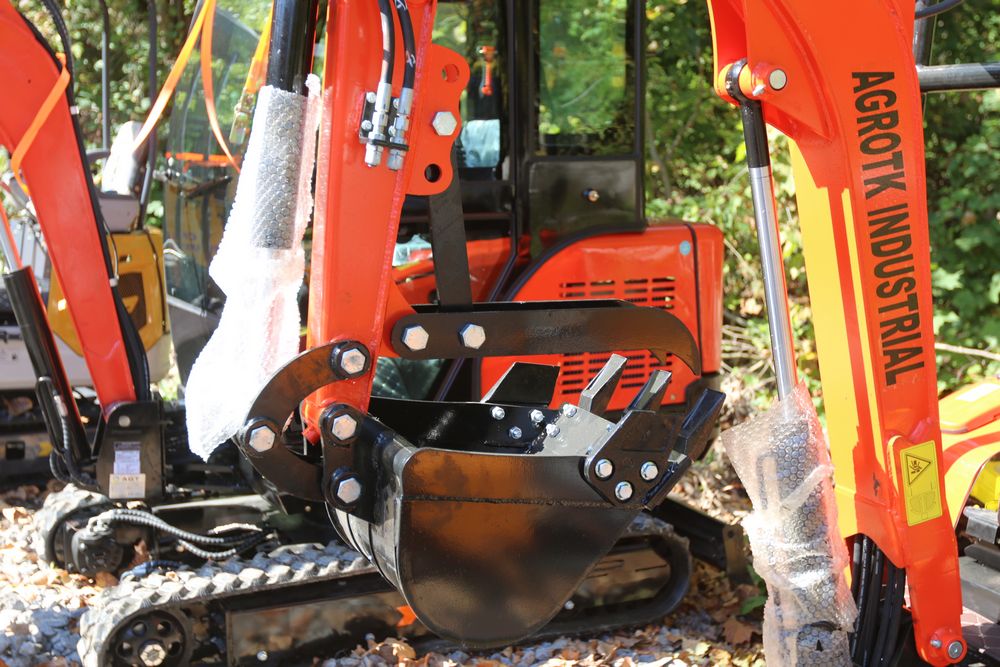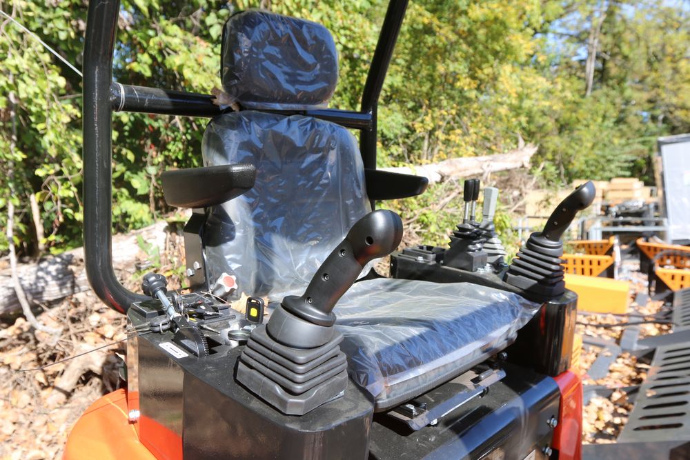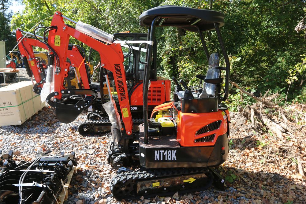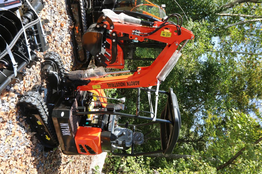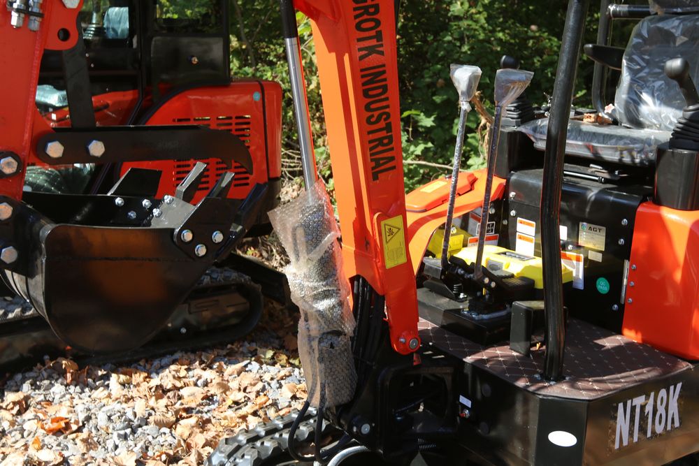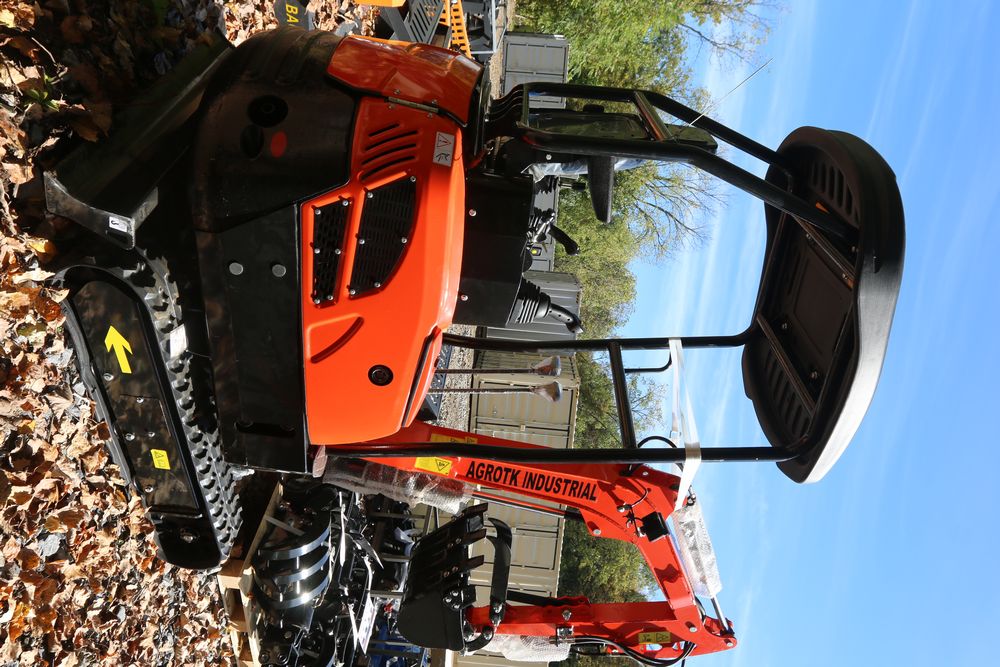 ATG Industrial Industrial mini Excavator, Kubota 15HP Diesel engine with EPA, model NT18K, with thumb, canopy cover, dozer blade, hand and foot controls. Hours reading less than 1 hour.