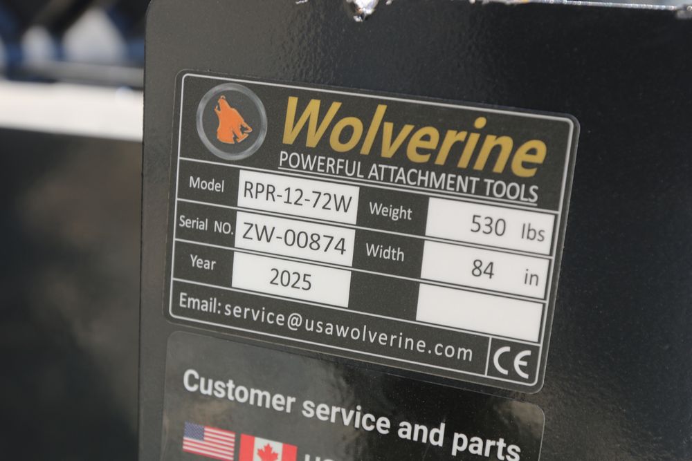 Wolverine skid steer ripper attachment model RPR-12-72W, space for 11 teeth, 8" depth, 18" ripper tooth total length.